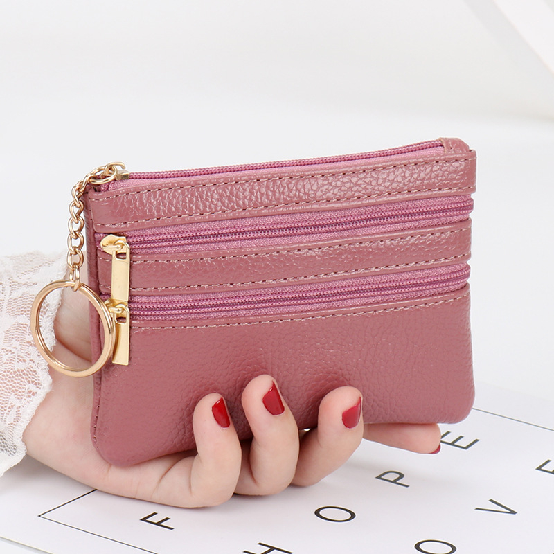 กระเป๋าสตางค์ หนังนิ่ม ใบสั้น อเนกประสงค์ แต่งซิป ใส่เหรียญได้ สําหรับผู้หญิง