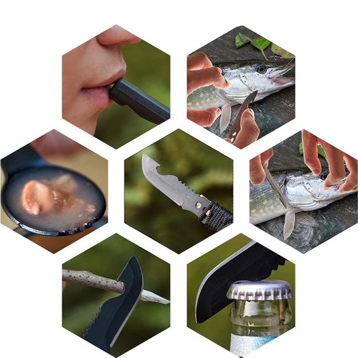 Function: ช้อน,ส้อม,มีด,เลื่อย, นกหวีด, ที่เปิด,ขูดปลา,เชือก ฯลฯ.