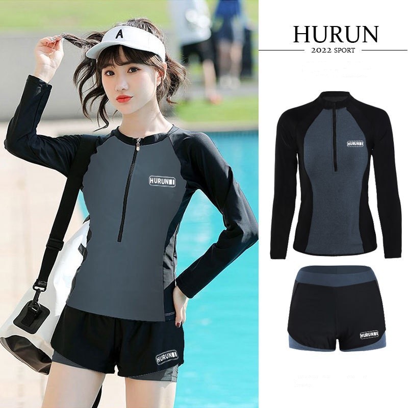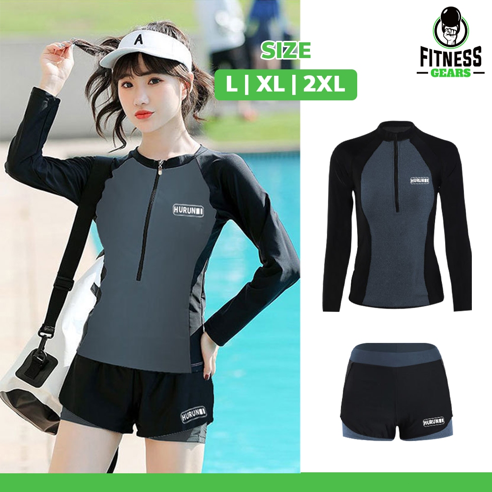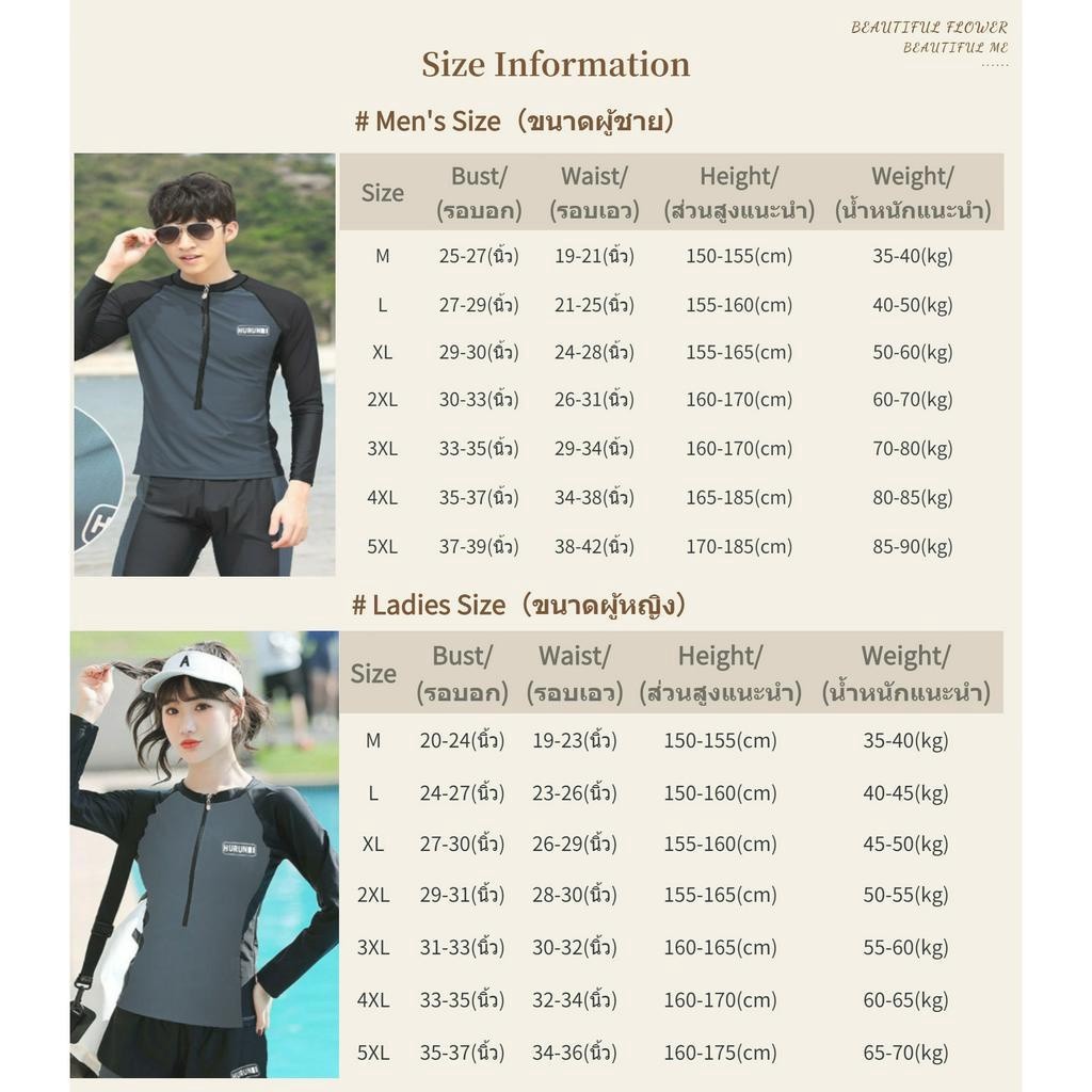 Fitness ชุดดำน้ำคู่รัก กันUV ชุดว่ายน้ำแขนยาว ผู้ชายและผู้หญิง