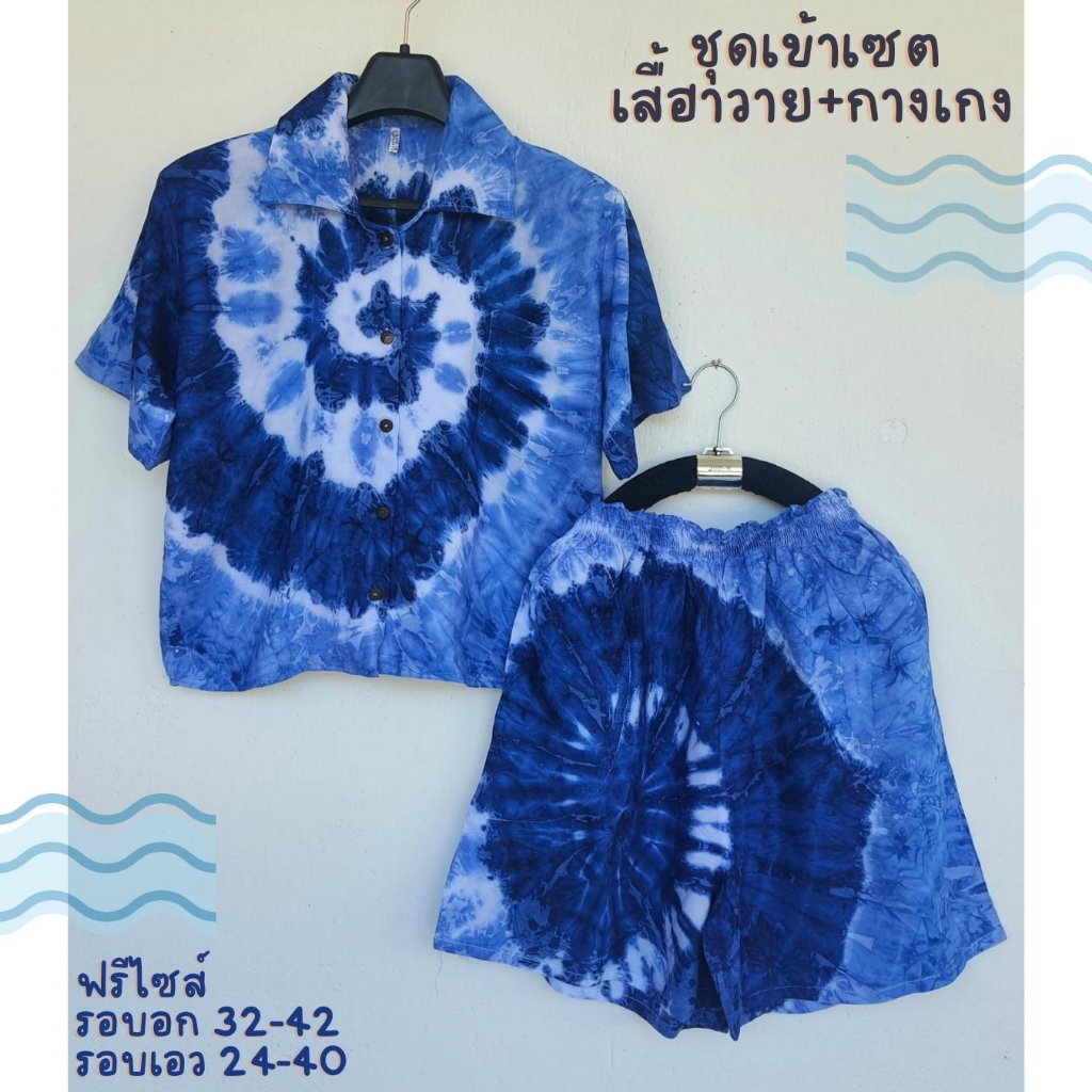 ชุดเซ็ตเสื้อฮาวาย+กางเกงขาสั้นเอวจีบระบาย