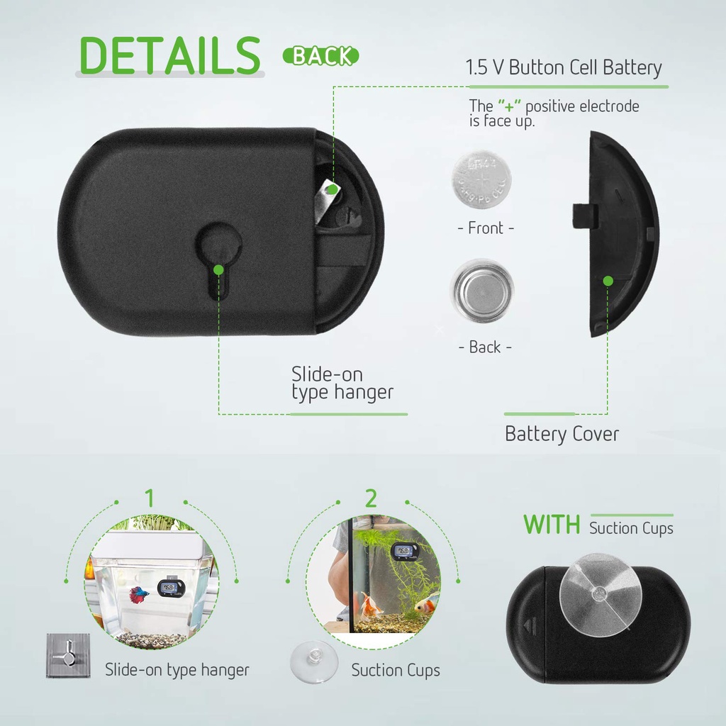 1. โพรบจุ่มลงในตู้ปลาเพื่อวัดอุณหภูมิของน้ำ (โพรบใต้น้ำเท่านั้นอย่าจุ่มเทอร์โมมิเตอร์ลงในน้ำ)