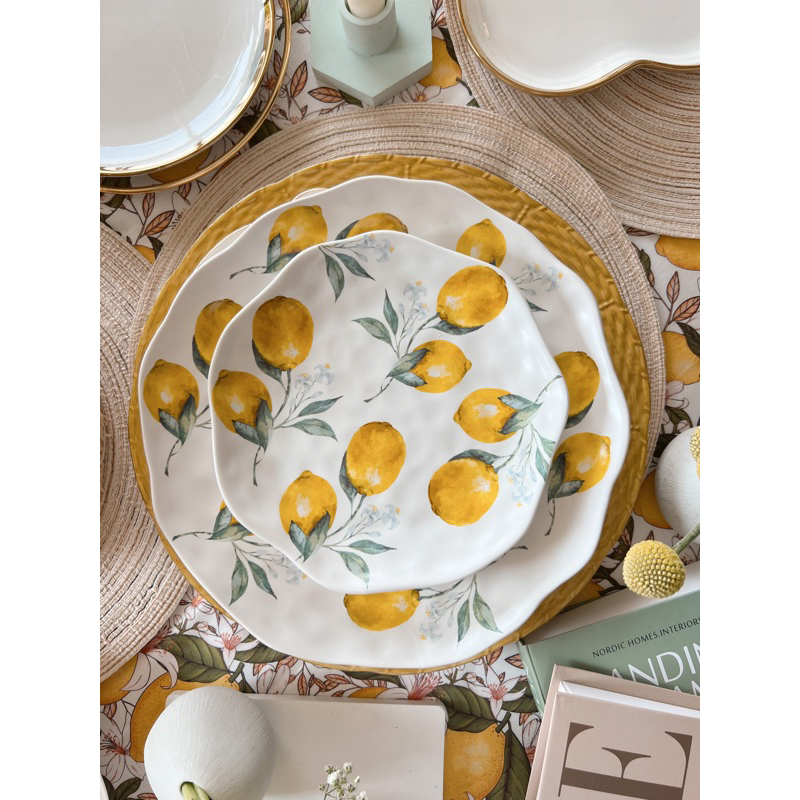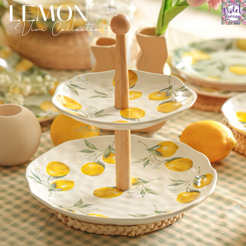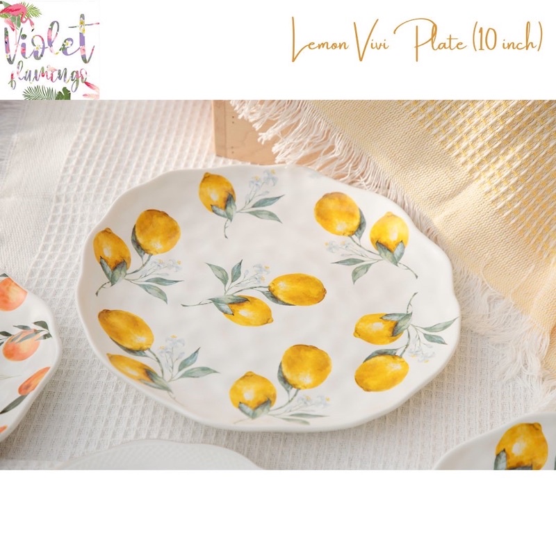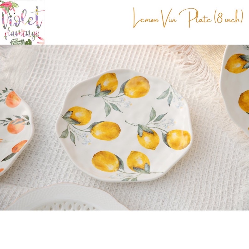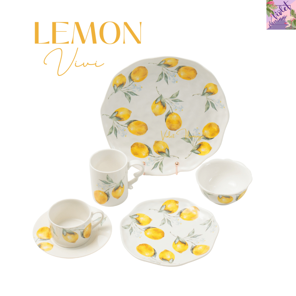หยิบใส่ตะกร้าViolet Flamingo [พร้อมส่งจากไทย] จานลายเลมอน จานเซรามิคลายเลมอน Lemon Vivi Collection จานเลมอน เข้าไมโครเวฟได้