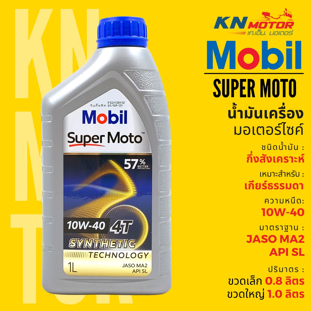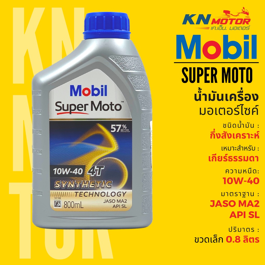 น้ำมันเครื่องโมบิล กึ่งสังเคราะห์ Mobil Super Moto 4T Synthetic Technology เบอร์ 10W-40 ขนาด 0.8 และ 1 ลิตร ของแท้จากเอสโซ่ประเทศไทย