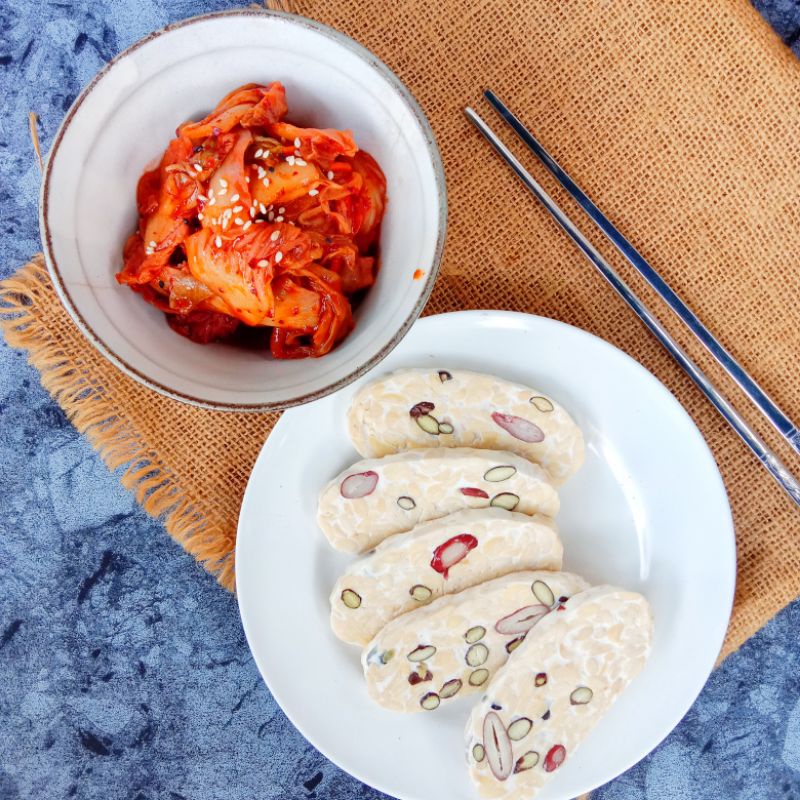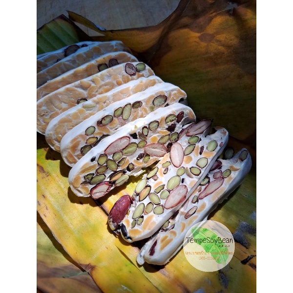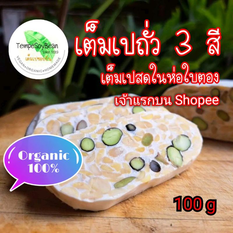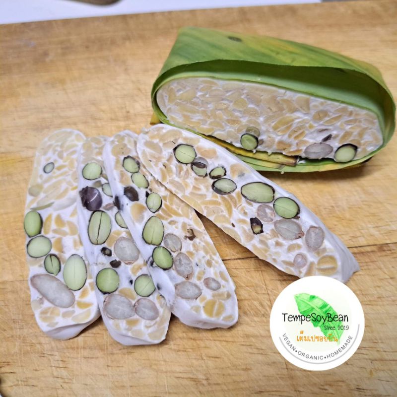เต็มเปถั่ว 3 สี ประกอบด้วยถั่วเหลือง, ถั่วเหลืองเปลือกดำเนื้อเขียว และถั่วแดงหลวง
