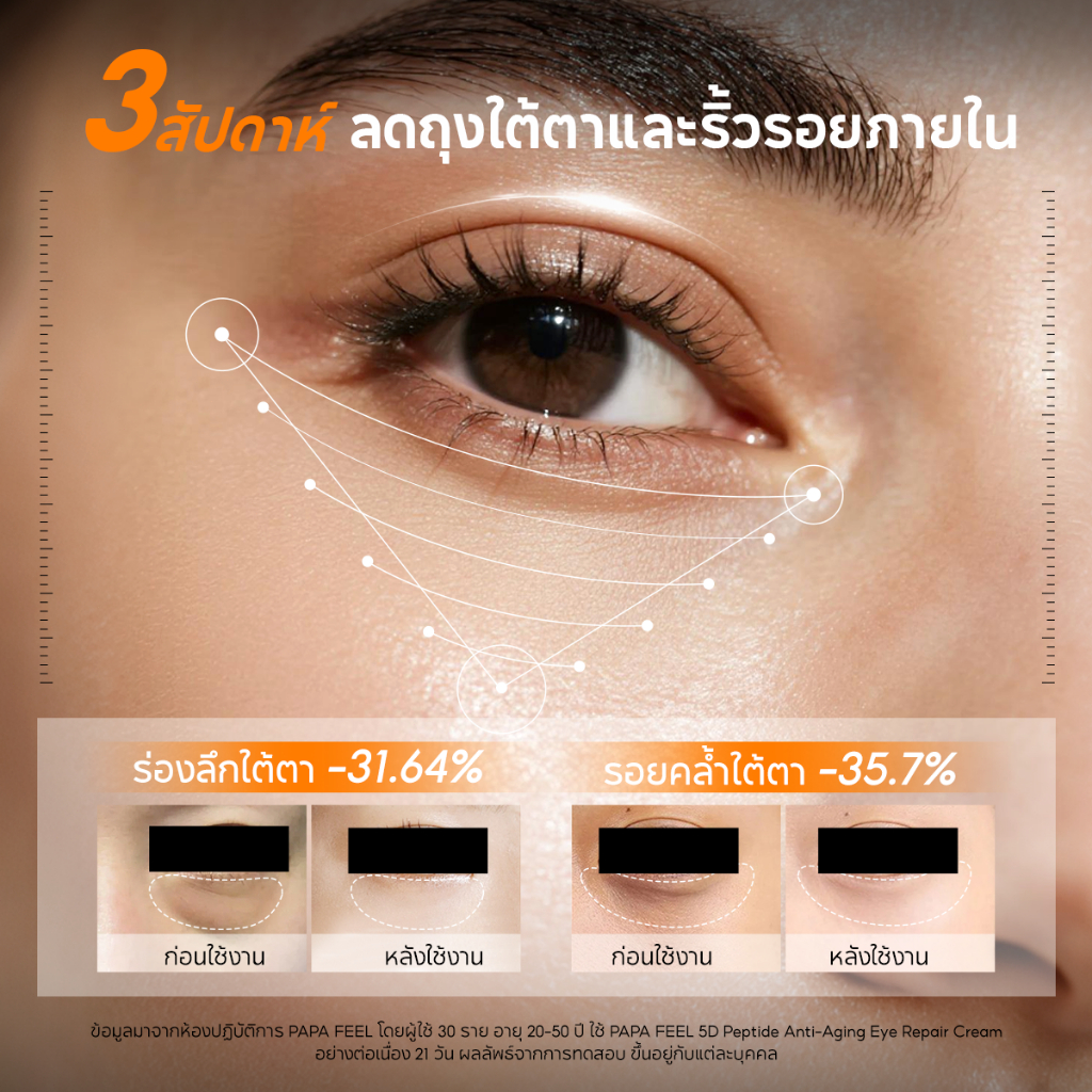 PAPA FEEL จุลินทรีย์ 5D Peptide ลดริ้วรอย อายครีม 15g | ลดริ้วรอย กระชับใต้ตา แก้ขอบตาคล้ำ ฟื้นฟูใต้ตา Anti Aging Eye Cream