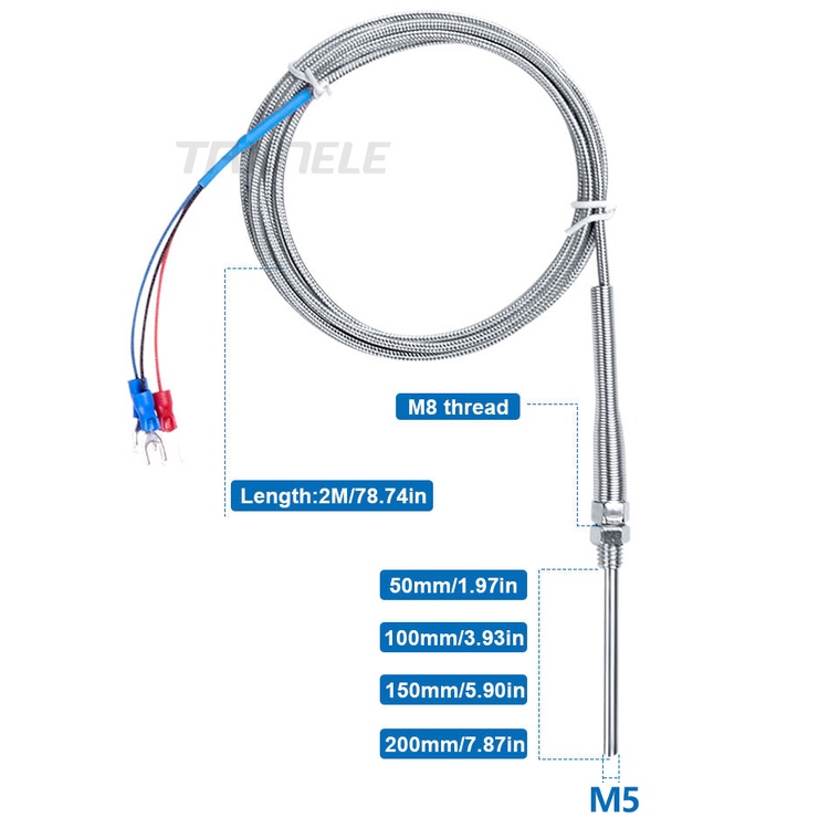 หยิบใส่ตะกร้าเซนเซอร์อุณหภูมิเตาอบ 400 องศา RTD K J PT100 50 มม. 150 มม. 100 มม. 200 มม. M5