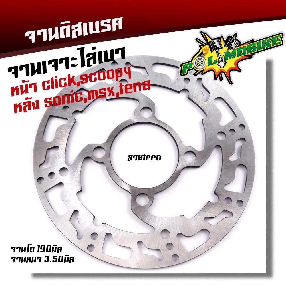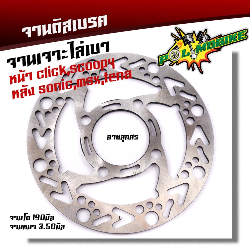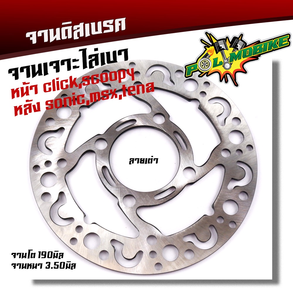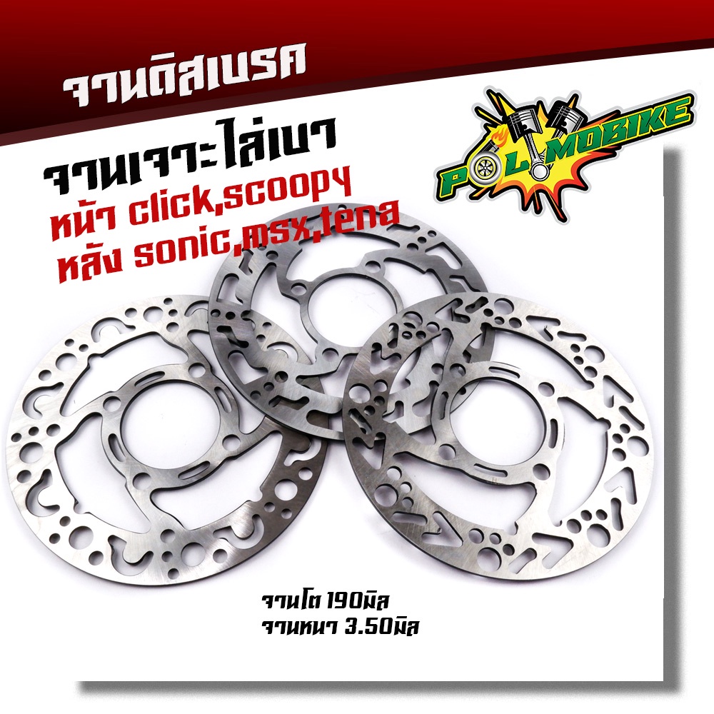 จานเจาะ หน้า CLICK, SCOOPY,หลัง SONIC TENA MSXงานเจาะสวยมาก จาน 1900มิล หนา3.5มิล มีให้เลือก 3 ลาย จานดิสเบรคหน้า จานเด