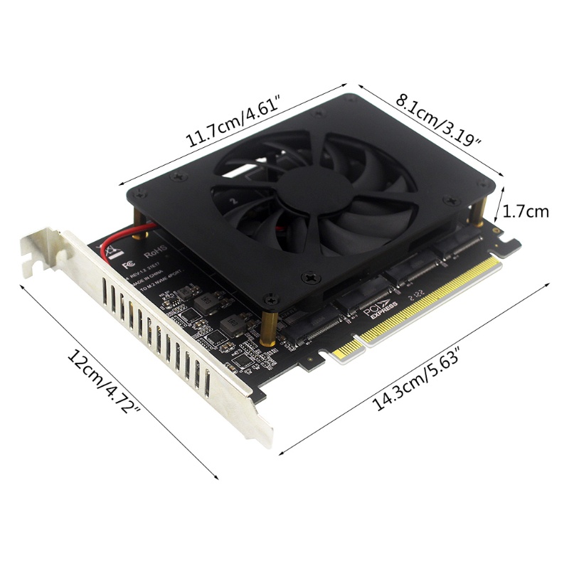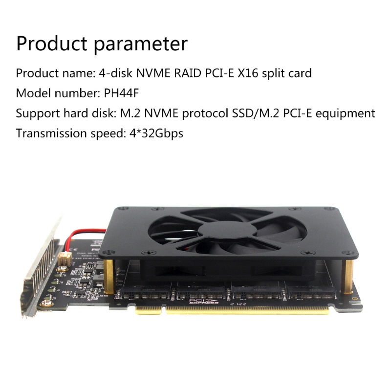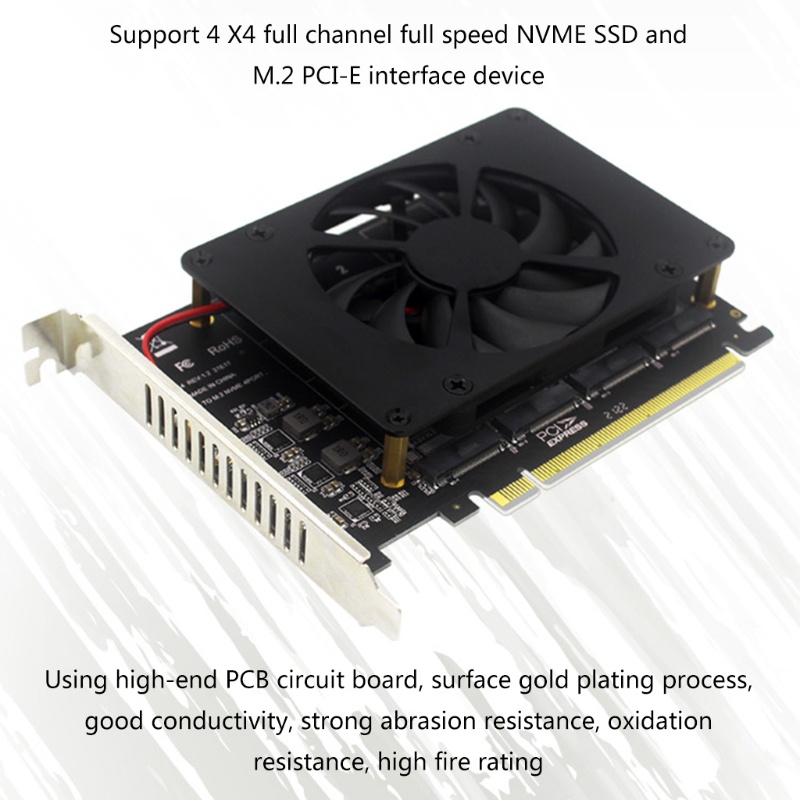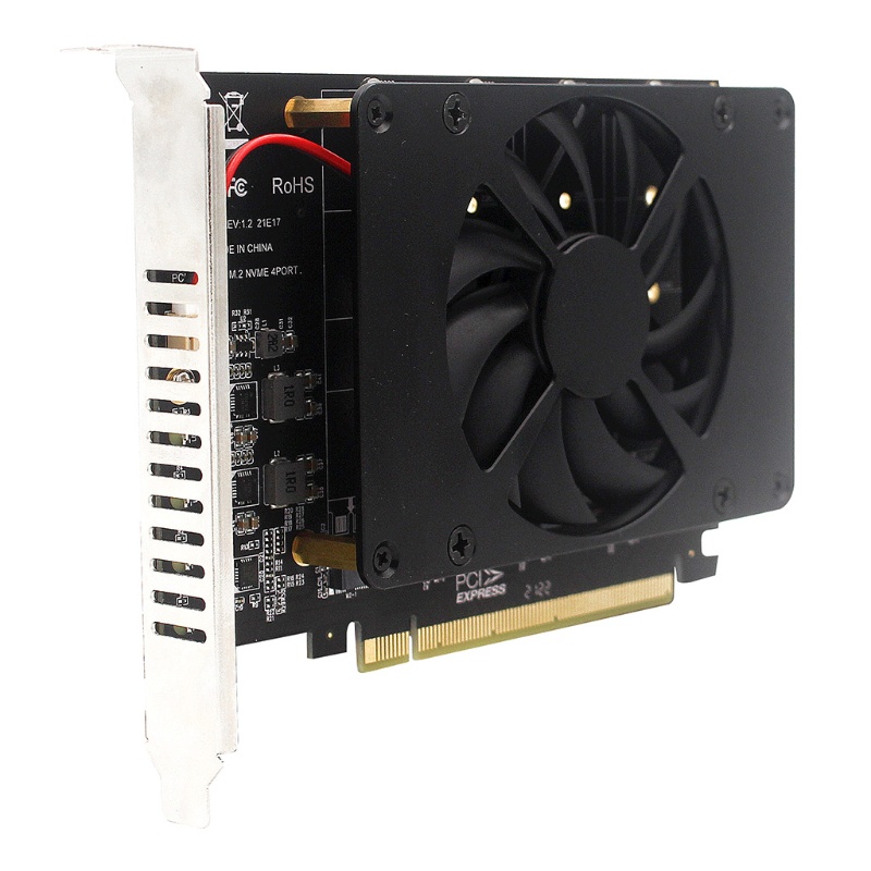 Ssd ดิสก์ 4 แผ่นสำหรับเมทริกซ์การ์ดขยายพร้อมกันสัญญาณความเร็วเต็ม 4x32Gbps พร้อมพัดลมระบายความร้อน