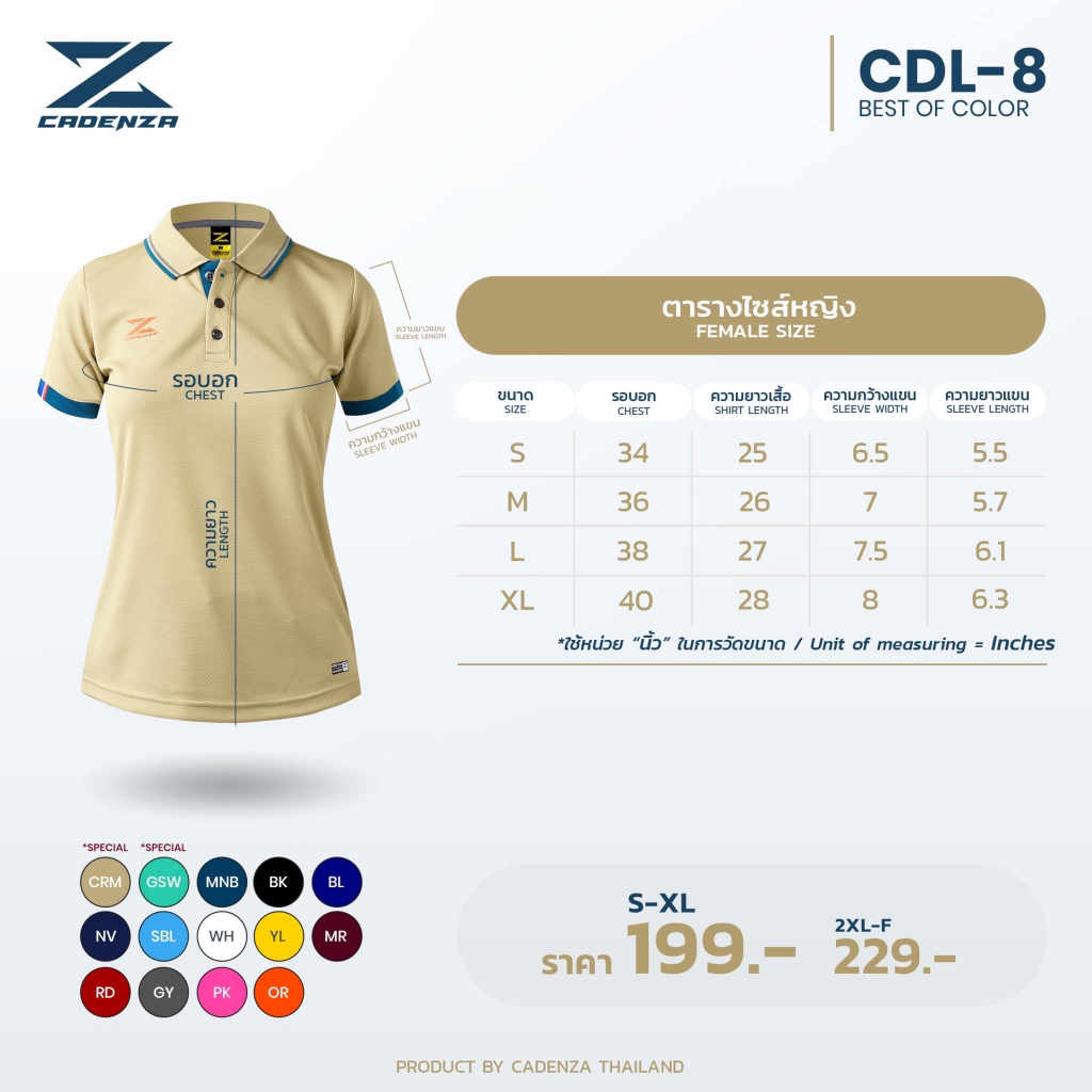 💥ลดโหดสูงสุด 1,000 บาท💥 เสื้อโปโลหญิง (WOMAN EIGHT) CADENZA คาเดนซ่า รุ่น CDL-8Y S1 แท้100%