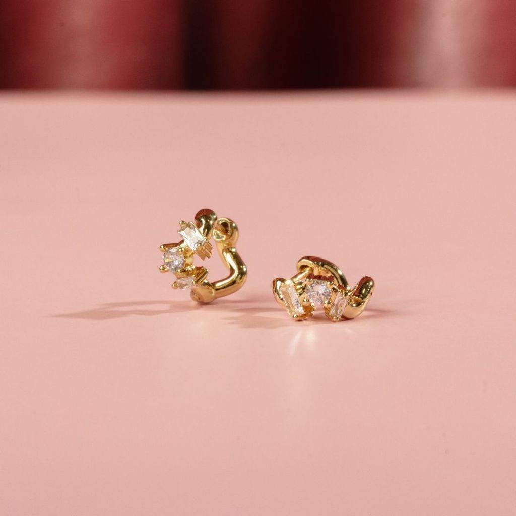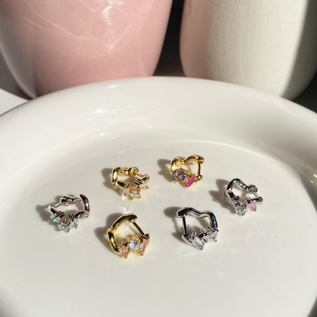 Petite Ramen Hoop ต่างหูห่วงเกลียวประดับเพทาย