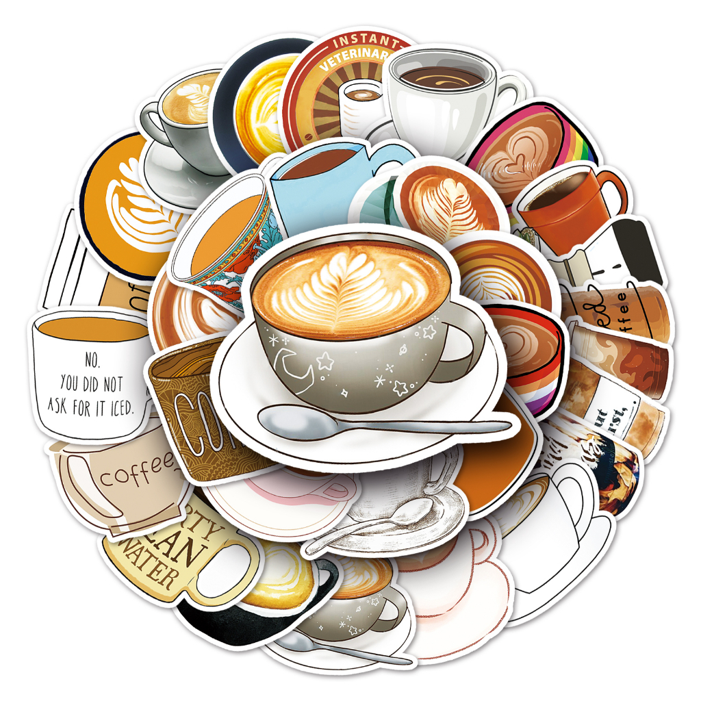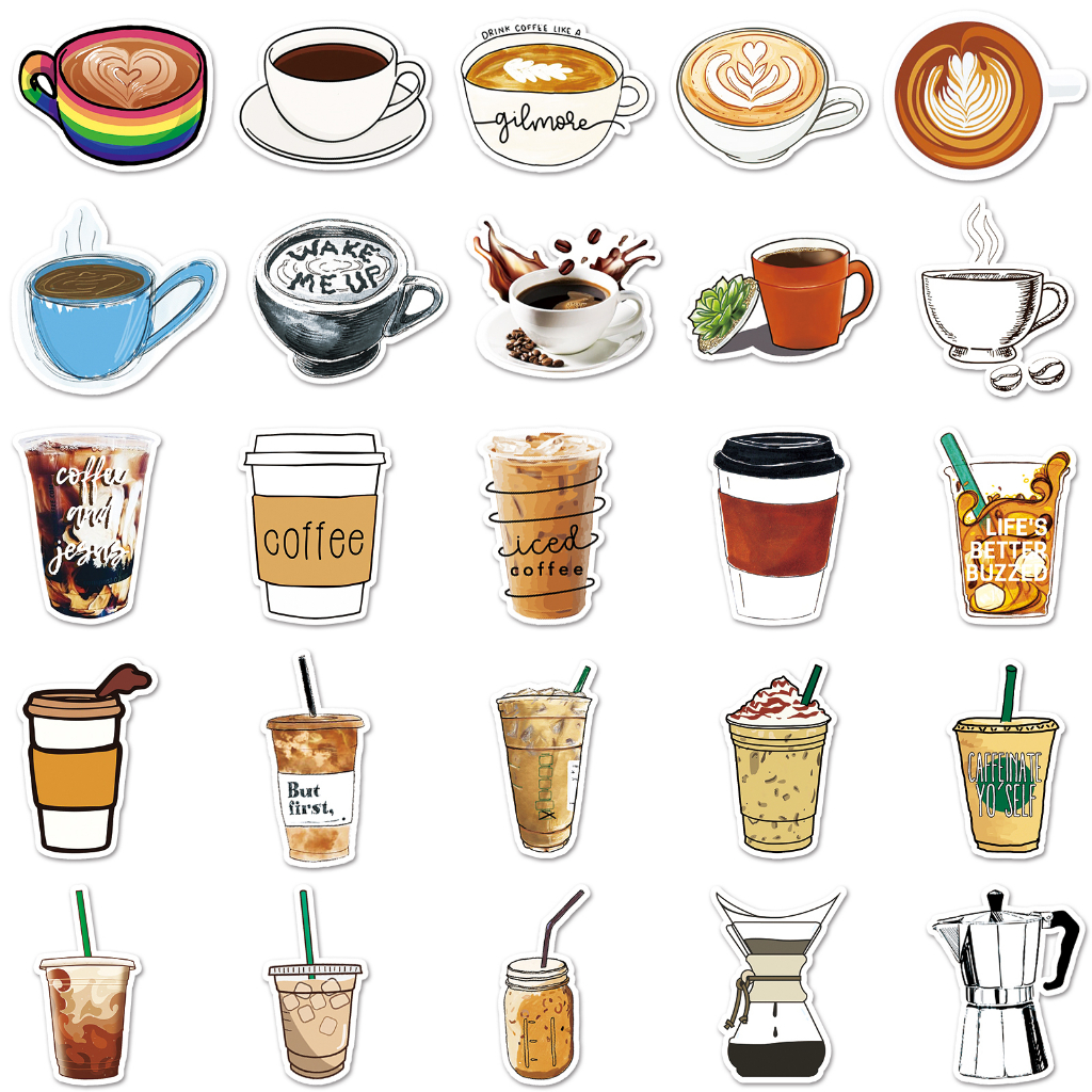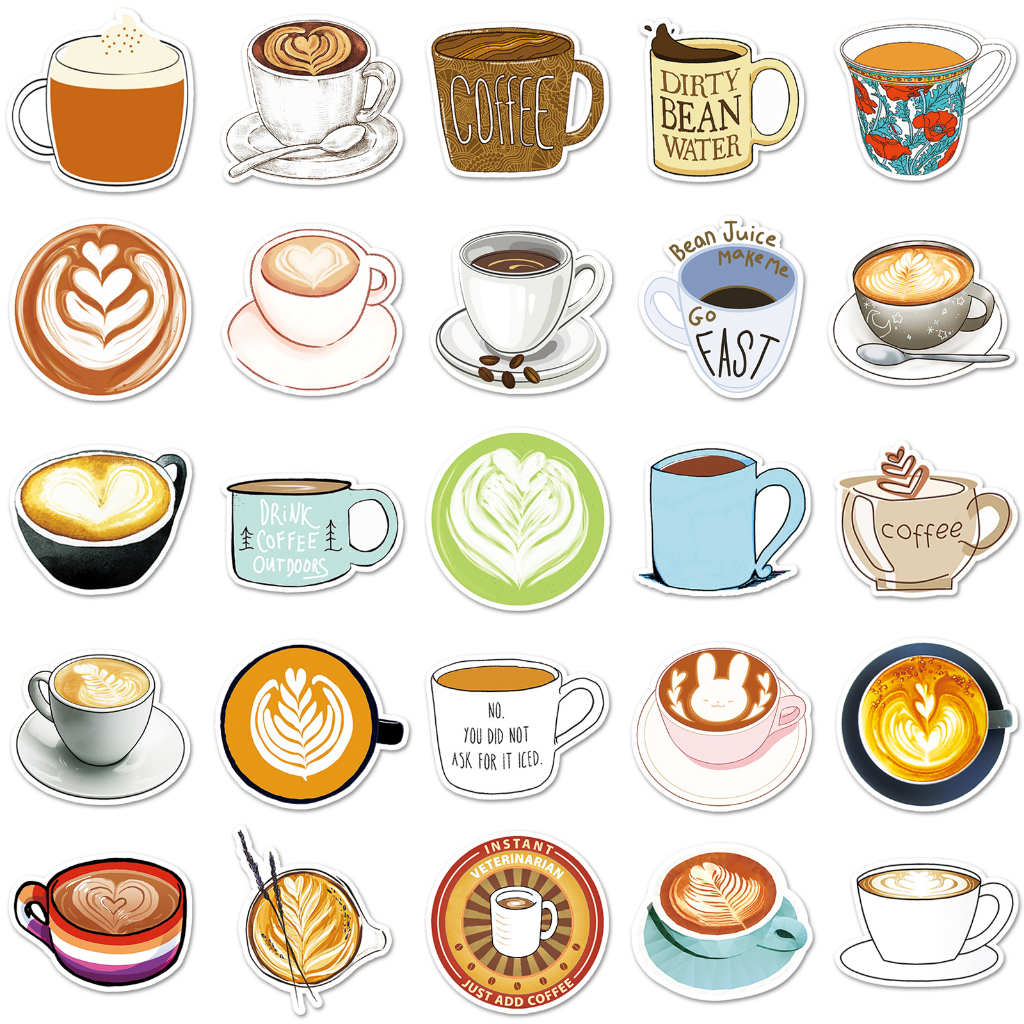 50 ชิ้นตลกสติกเกอร์กาแฟกันน้ํา DIY สําหรับโทรศัพท์แล็ปท็อปรถสติกเกอร์ Creative Home Decal