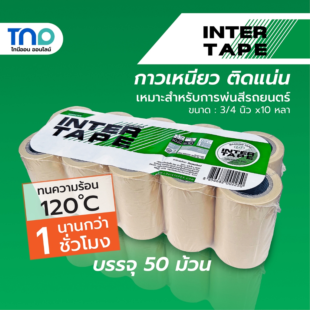 INTER TAPE กระดาษกาวย่น อินเตอร์เทป เทปกาวย่น พ่นสี กว้าง 3/4นิ้ว ยาว 10หลา แบ่งขาย 1ม้วน และยกแถว5ม้วน