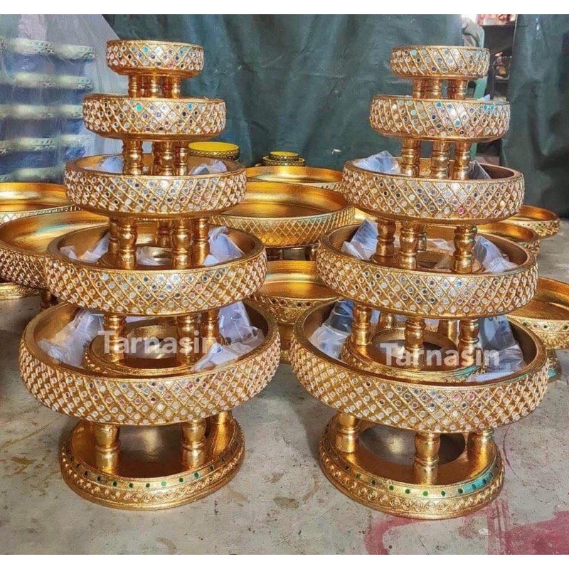 ขันโตกปิดทอง ลายตาราง 5 ชั้น