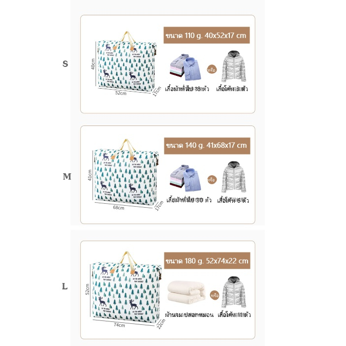 YY ถุงผ้า มีซิป กันน้ำ ถุงใส่ผ้านวม มี 4 ขนาด คละลาย hl 1720