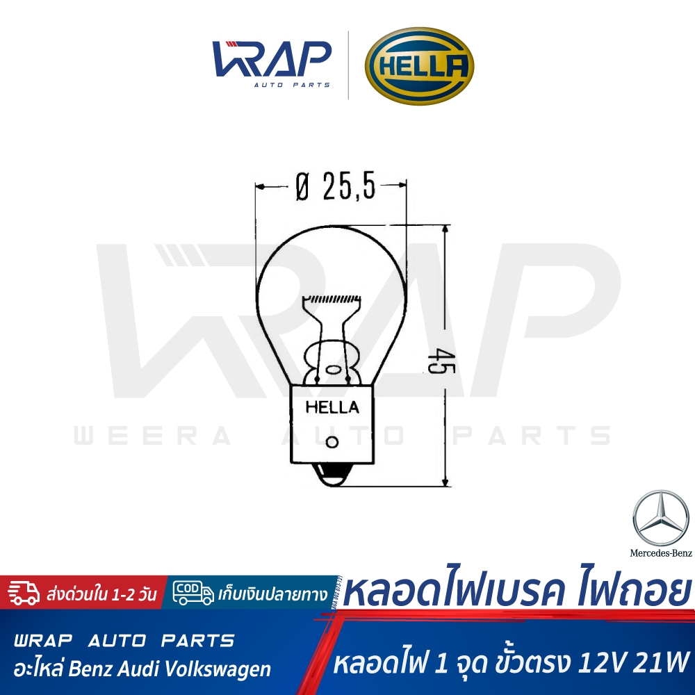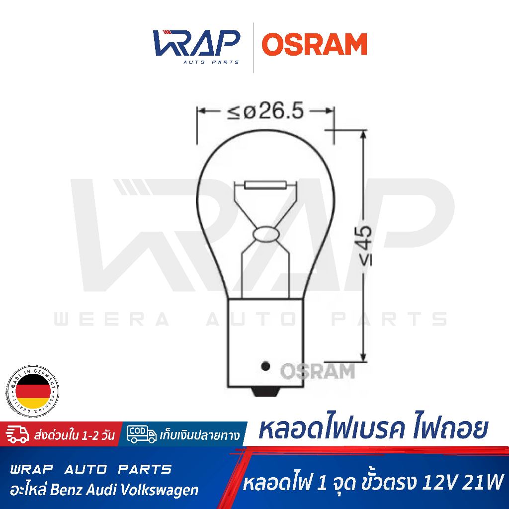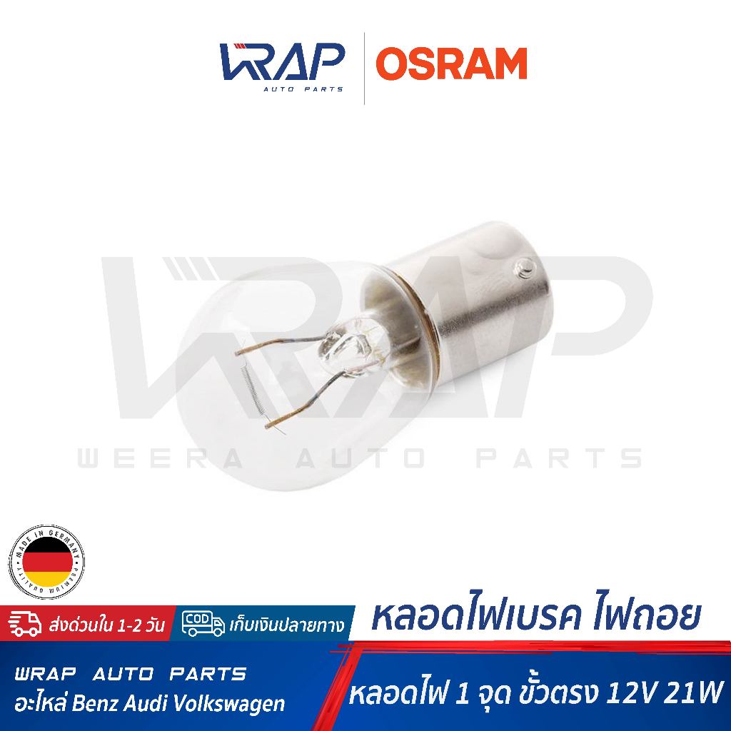 ⭐ OSRAM ⭐ หลอดไฟ 12V 21W (1 จุด ขั้วตรง) | OSRAM 7506 | HELLA 8GA 002 073-121 | หลอดไฟท้าย หลอดไฟเบรค หลอดไฟเบรก