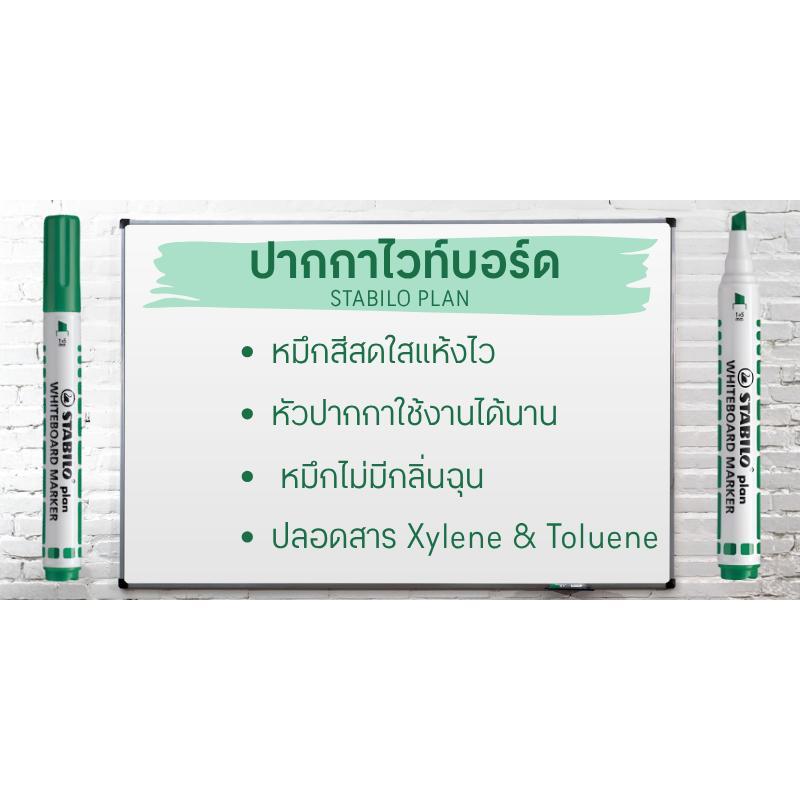 เคยไหม เขียนไวท์บอร์ดแล้วหมึกแห้งไว ลบไม่ออก หรือมีกลิ่นฉุนจนน่ารำคาญ STABILO plan ปากกาไวท์บอร์ดหัวตัด รุ่น Plan 643 ช่วยแก้ทุกปัญหาด้วยหมึกสูตรน้ำพิเศษ เขียนลื่น สีเข้มชัด ลบออกง่าย และไม่มีกลิ่นรบกวน ใช้งานได้ยาวนาน ไม่แห้งแม้เปิดฝาทิ้งไว้ เหมาะกับทั้ง