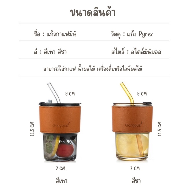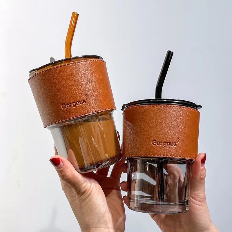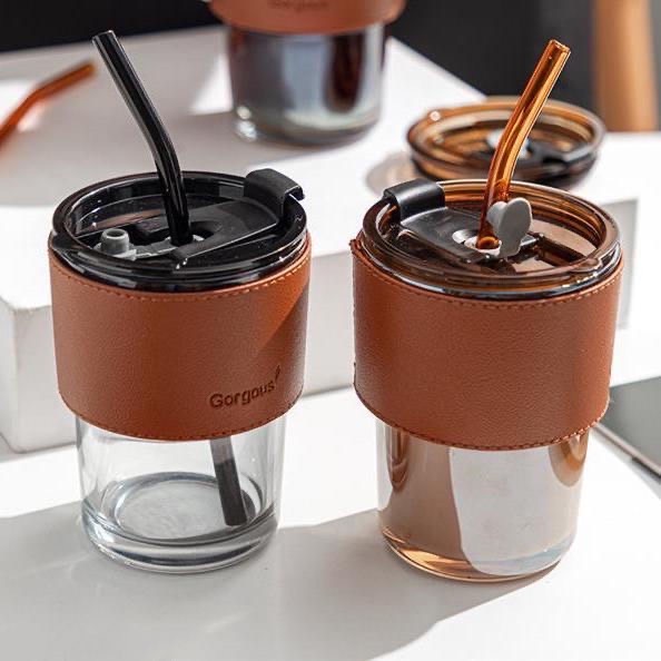 ☕ พร้อมหลอดแก้ว ฝาปิด และปลอกซิลิโคนสำหรับถือกันร้อน/เย็น