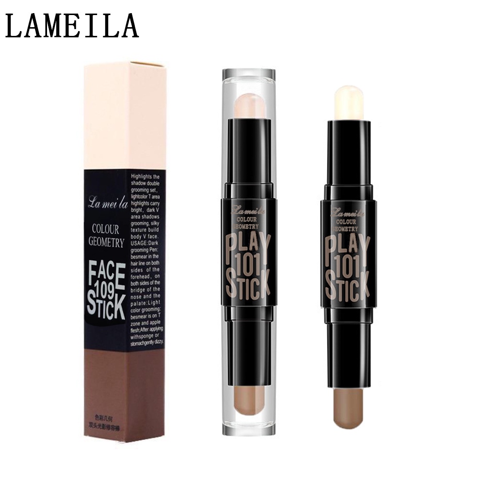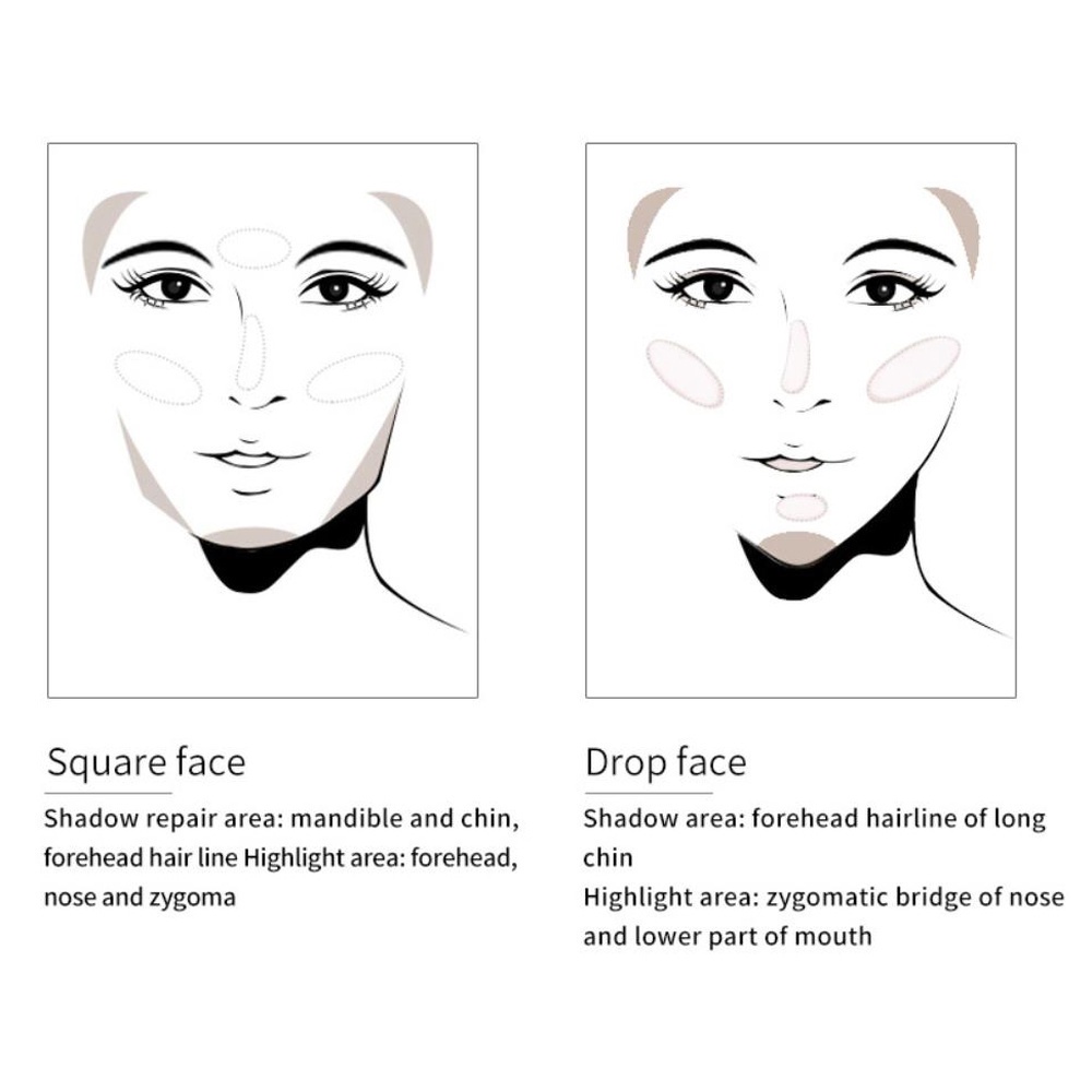 การผสมผสานระหว่างสองหัวเงาเงาสูงแบบเงาสูงเนื้อละเอียดเอฟเฟกต์ติดทนนานโดยไม่บานไฮไลท์ T-zone สีอ่อนเงา V-zone สีเข้ม