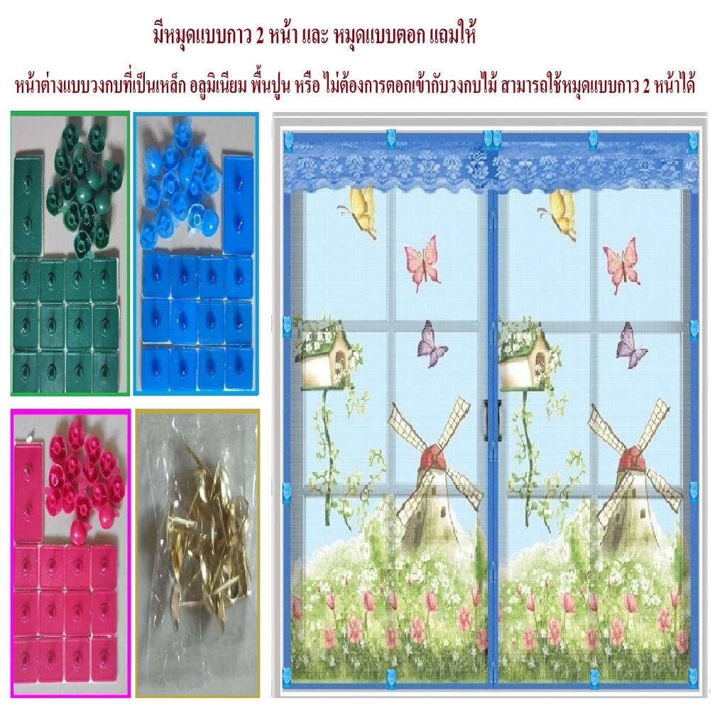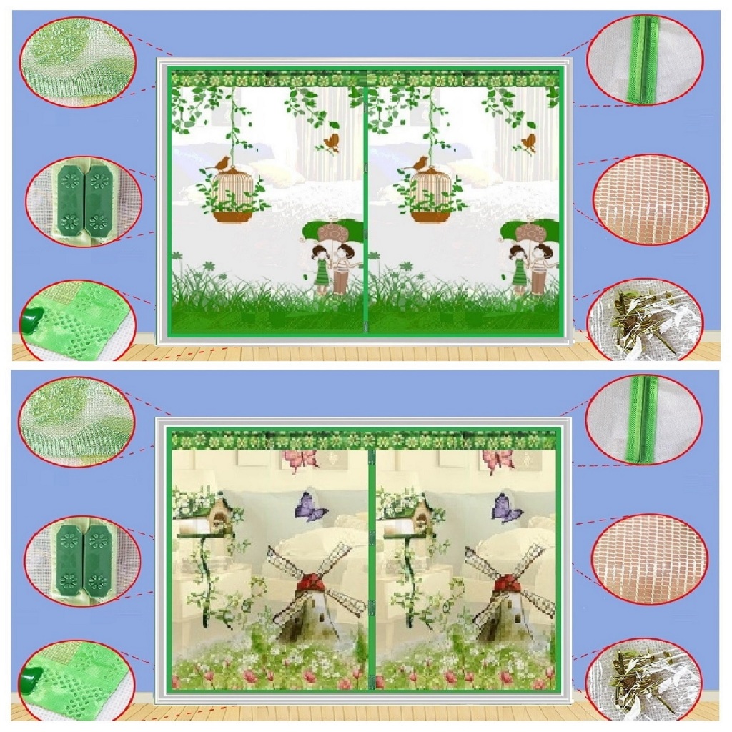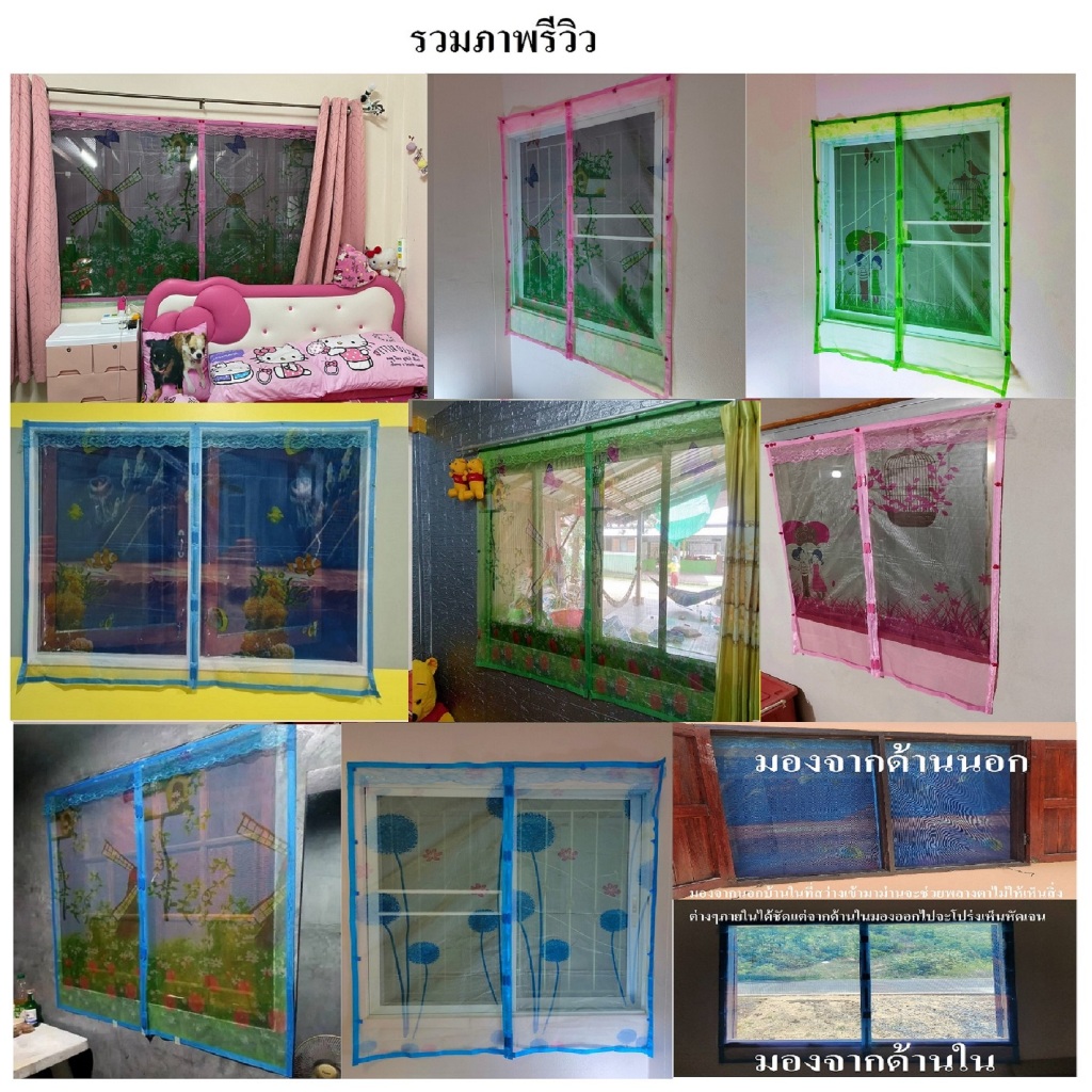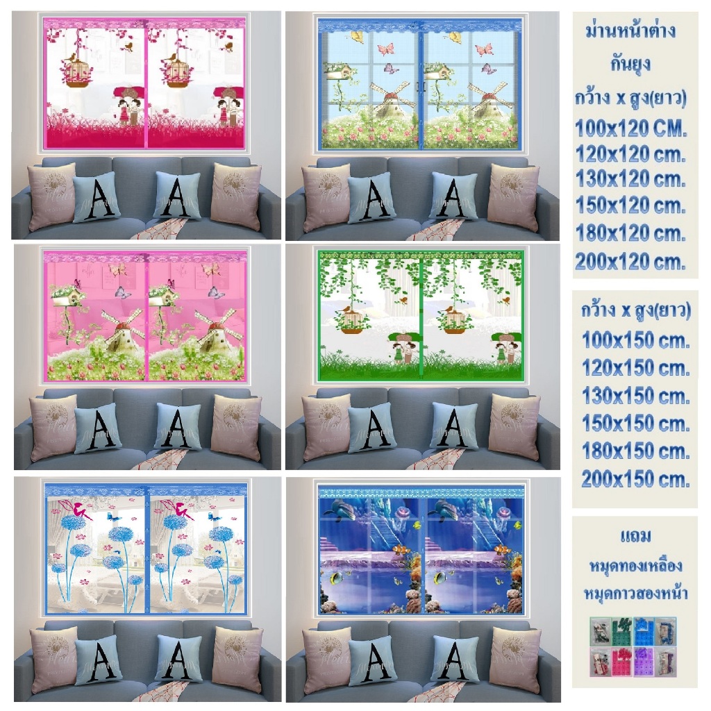 หยิบใส่ตะกร้าม่านกันยุง ม่านหน้าต่างกันยุง กว้าง100-200 cm สูง 120 และ 150 cm เลือกขนาดลายได้(ฟรีหมุดกาว+หมุดตอก)