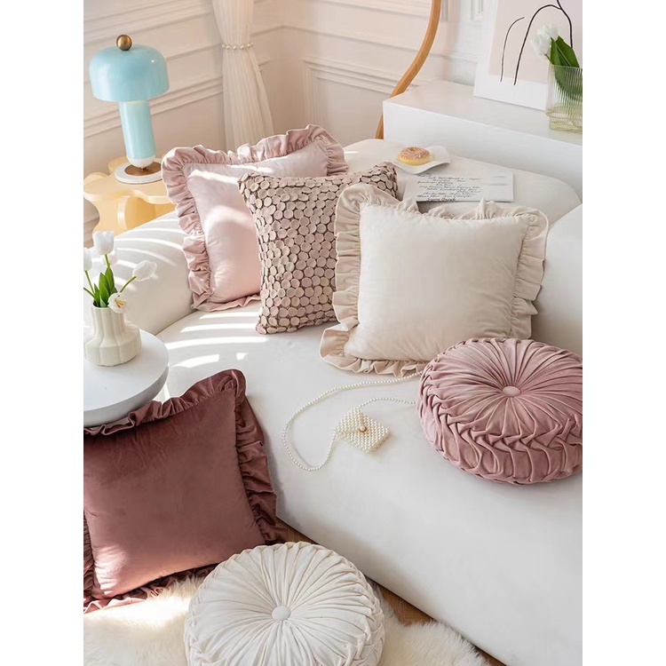 สไตล์ยุโรปรอบสีแดงแข็งสีเทาสีน้ำเงินสีชมพูสีเบจสีเขียวเบาะนั่งผ้ากำมะหยี่เบาะหลังหมอนโซฟาหมอนเตียง