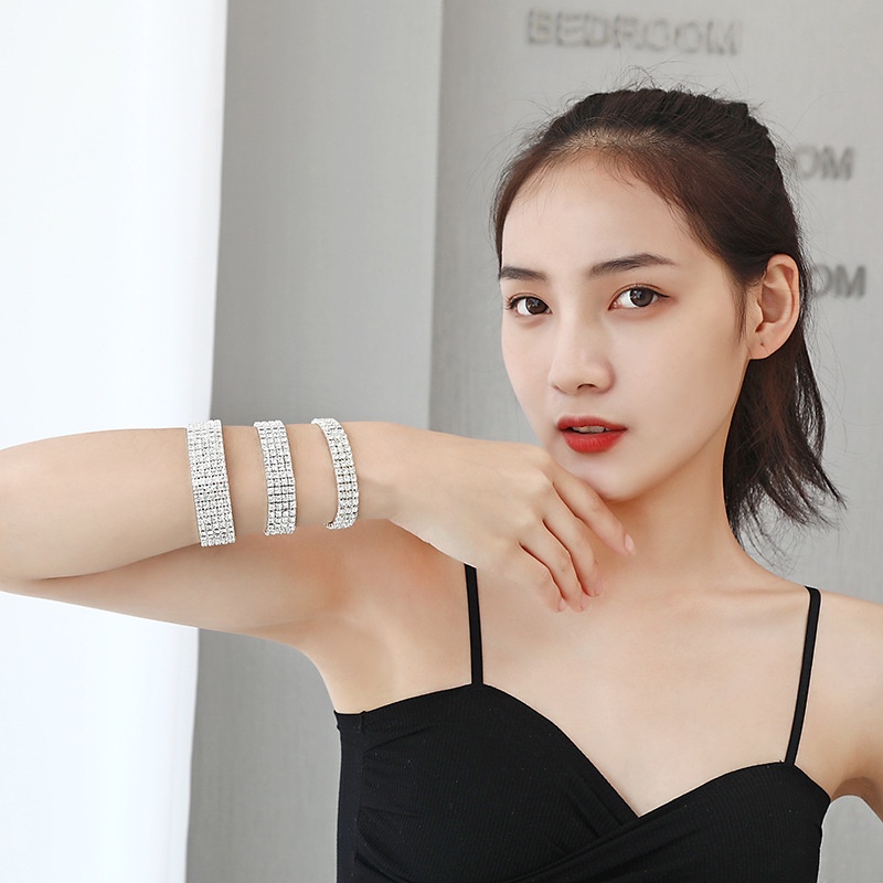 สร้อยข้อมือ ประดับเพชร พลอยเทียม 2-10 แถว ยืดหยุ่น อเนกประสงค์ สําหรับเจ้าสาว