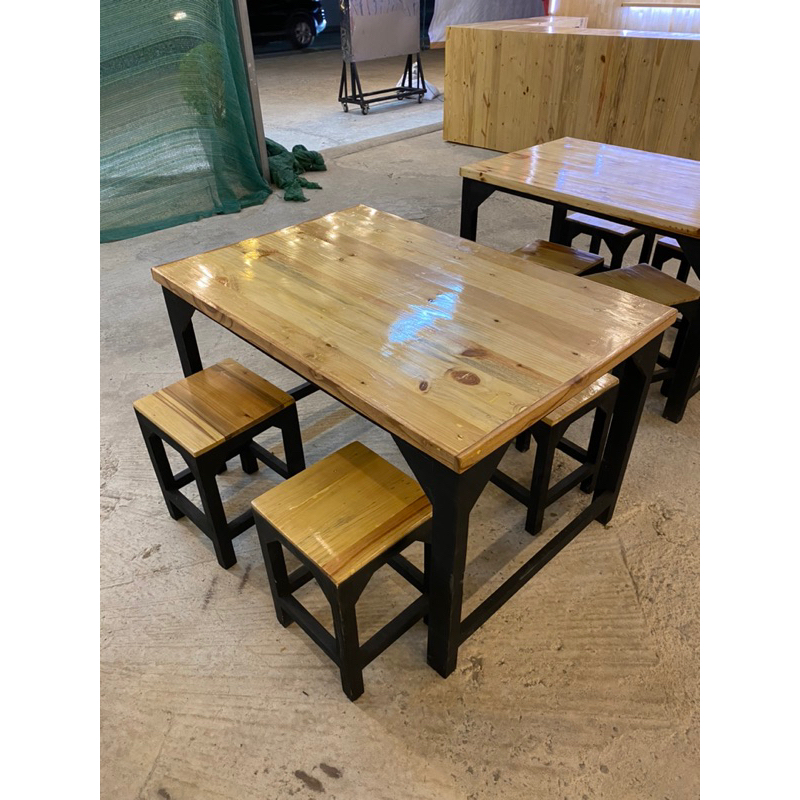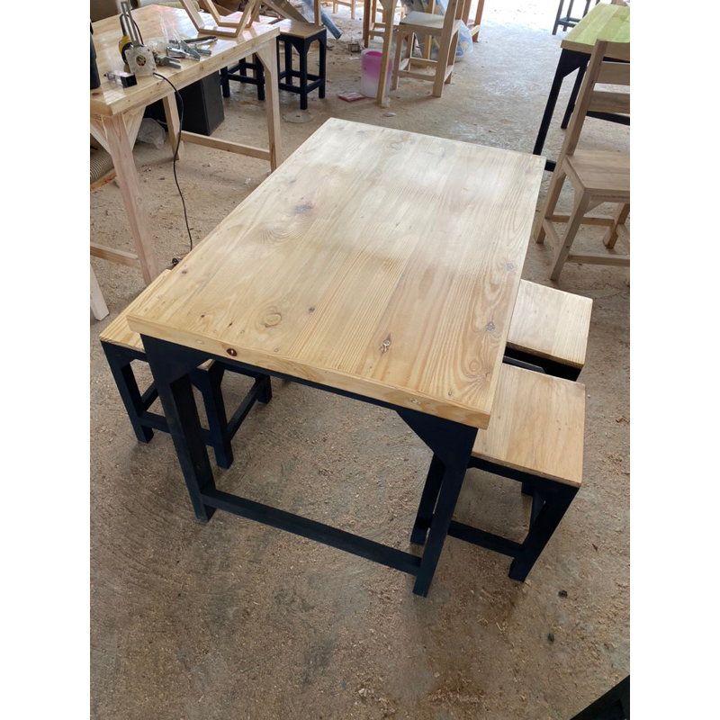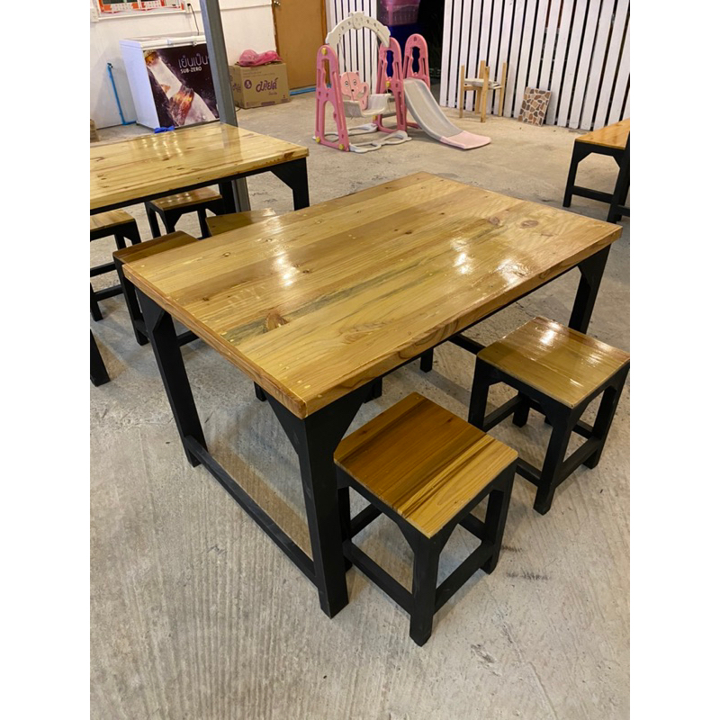 หยิบใส่ตะกร้าชุดโต๊ะเก้าอี้ไม้ ไม้สน ไม้จริง 120*80 ไม่บวม ทนแดดทนฝน