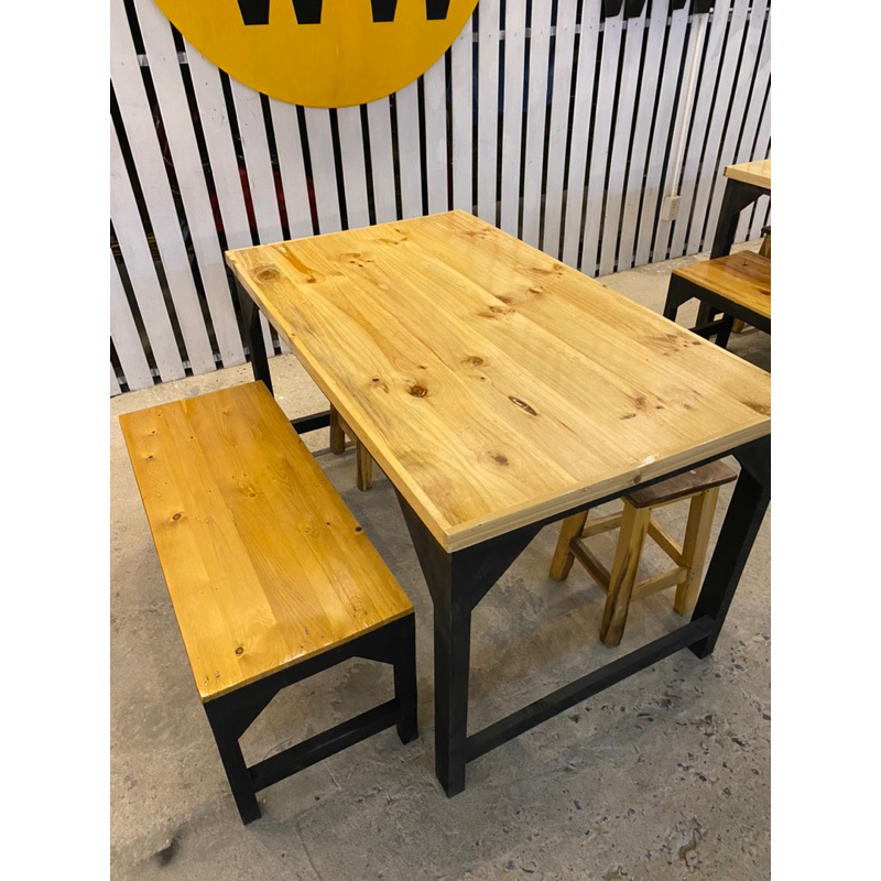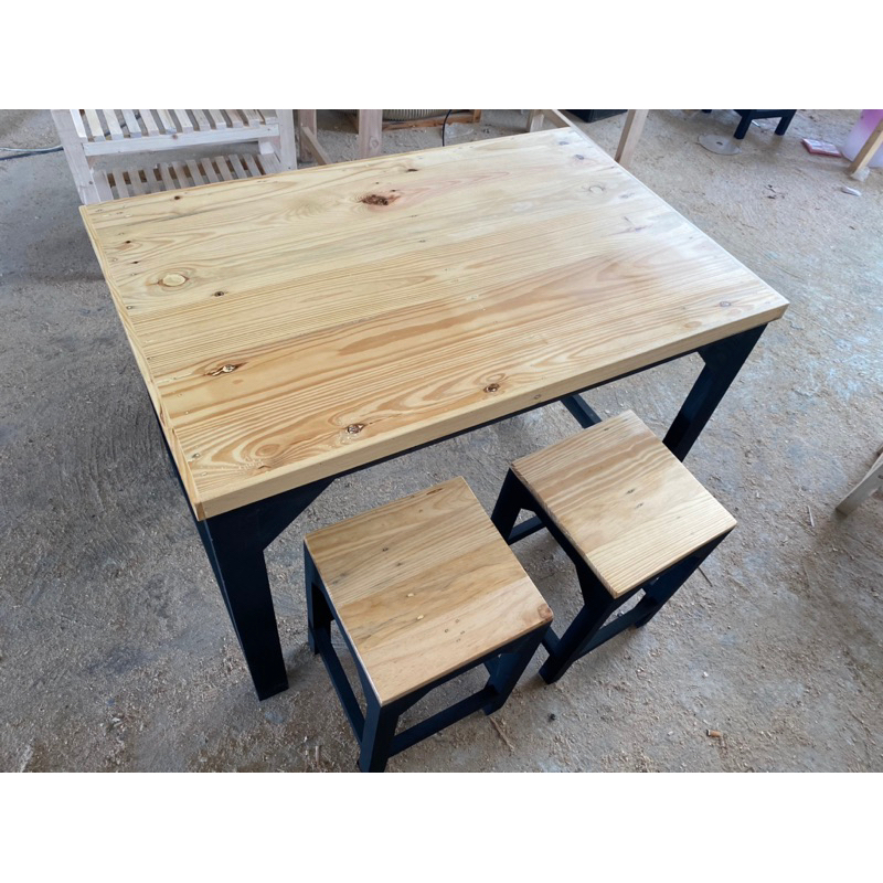 ชุดโต๊ะเก้าอี้ไม้ ไม้สน ไม้จริง 120*80 ไม่บวม ทนแดดทนฝน