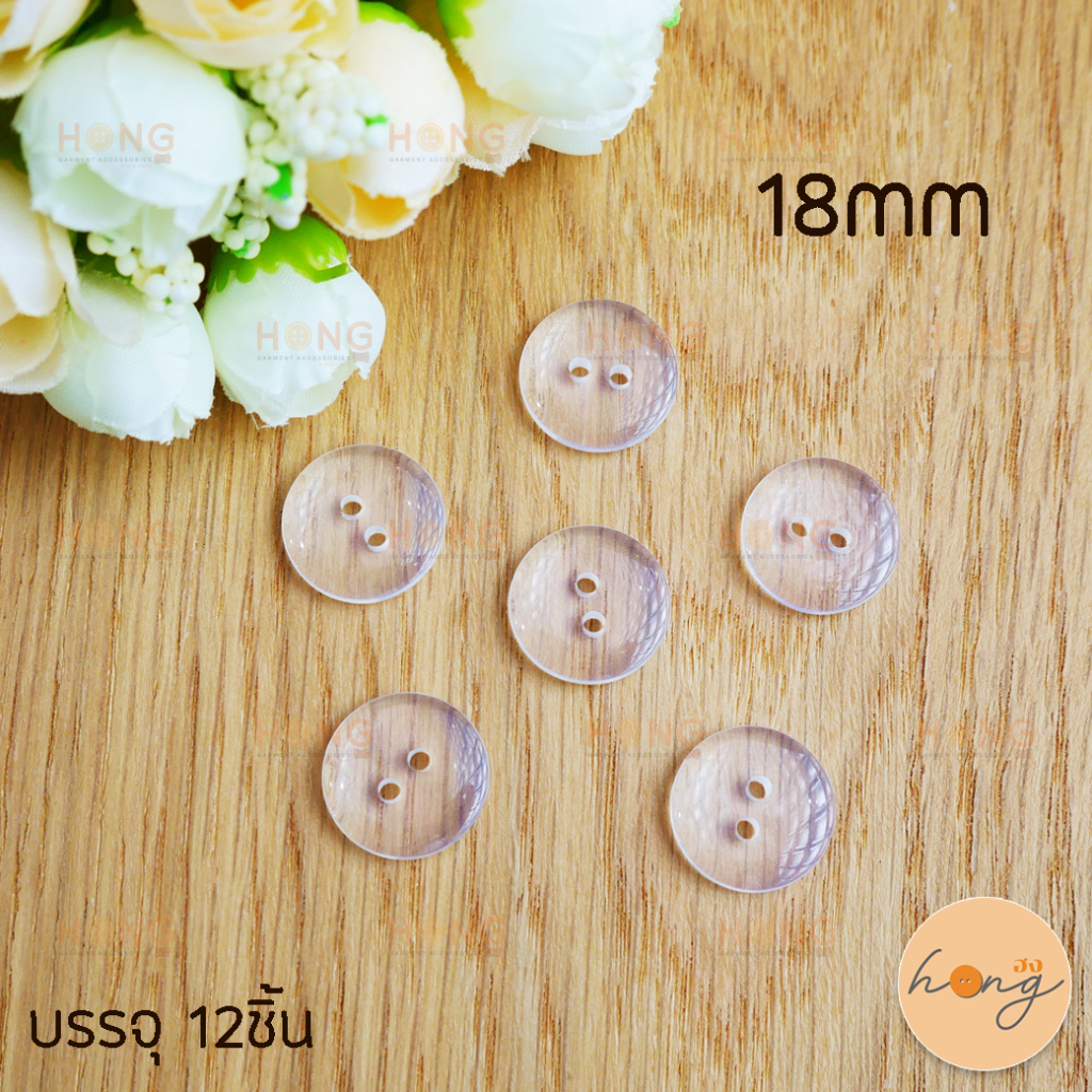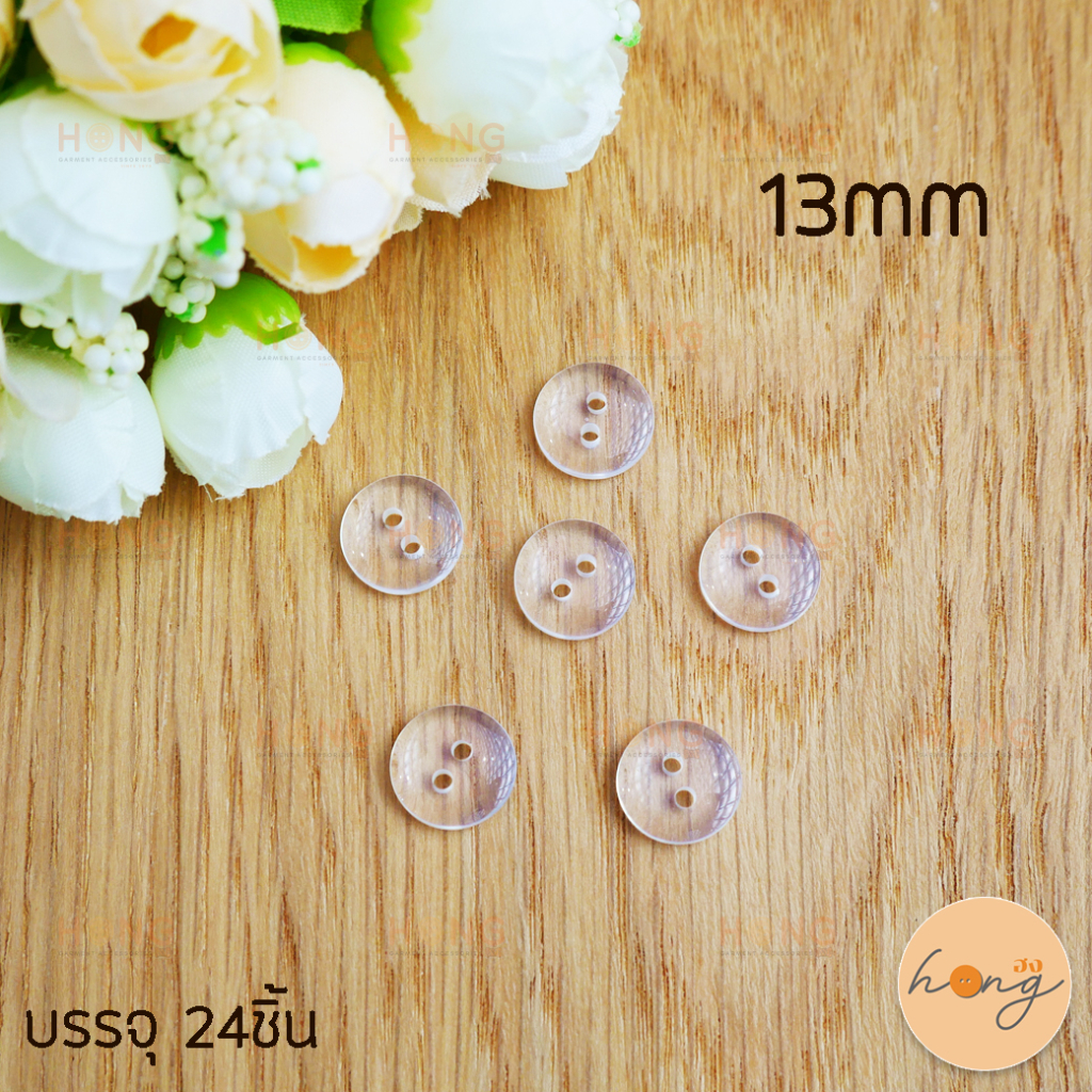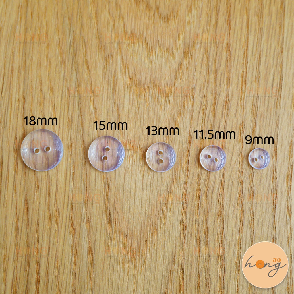 กระดุมโพลี ขอบหม่น สีใส Polyester Botton #202