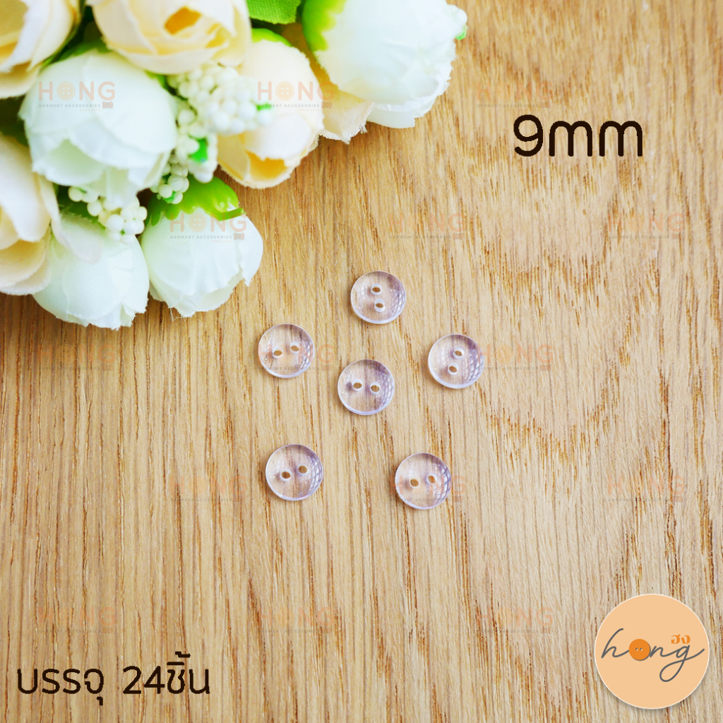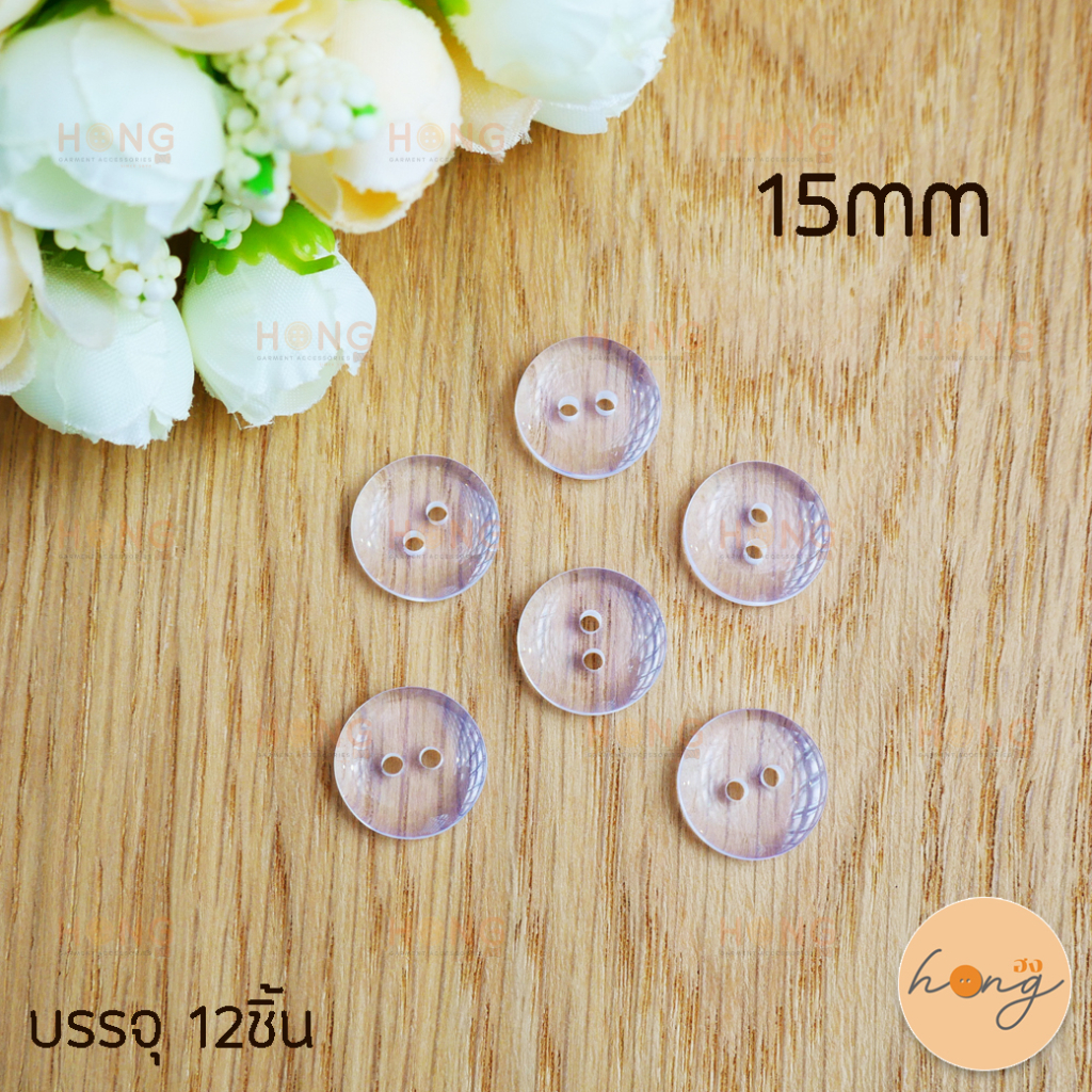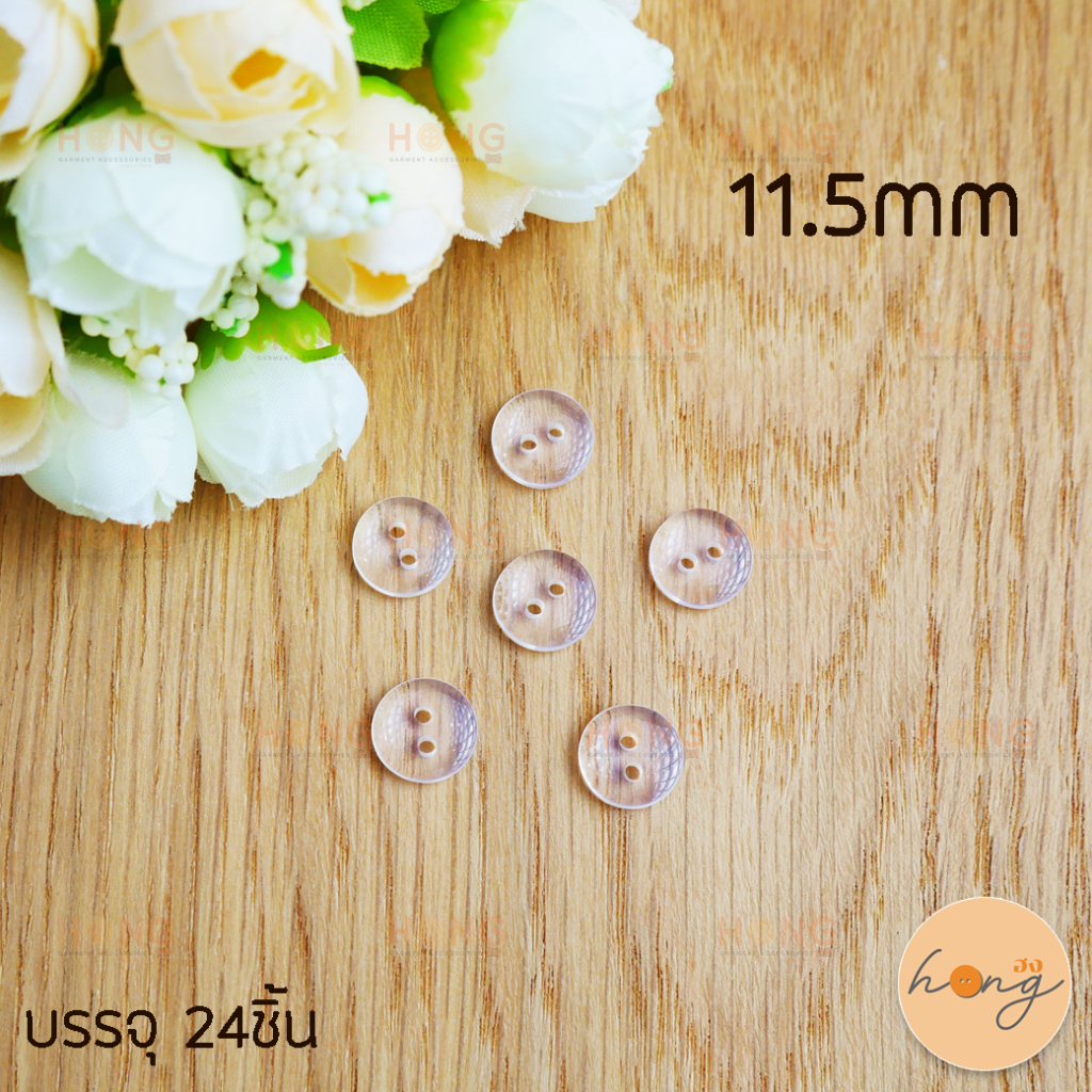 กระดุมโพลี ขอบหม่น สีใส Polyester Botton #202