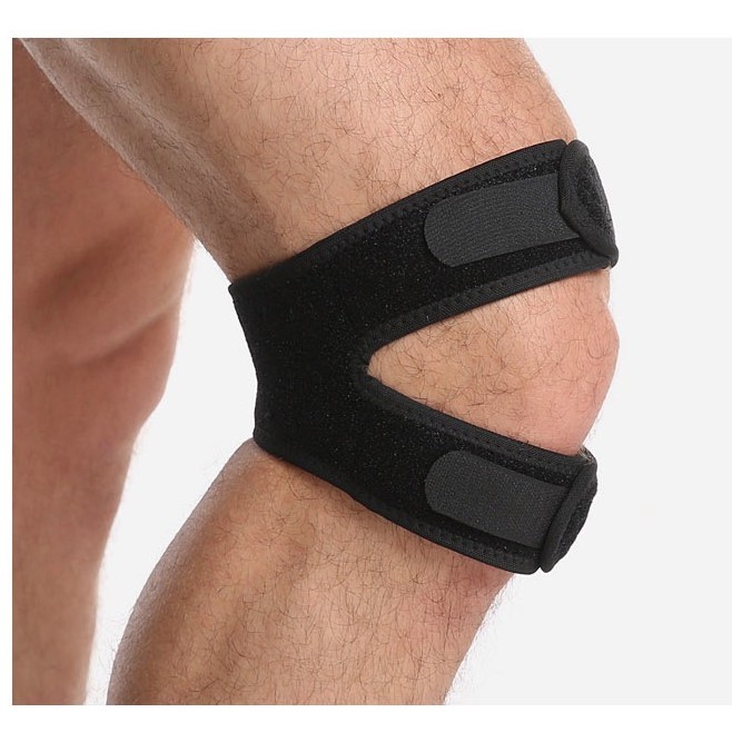 ตัวสายรัดรัดแน่น 2 แถบ รัดบริเวณเหนือหัวเข่าและใต้หัวเข่า ชาวยพยุงน้ำหนักตัว รวมถึงลดการบาดเจ็บจากกา