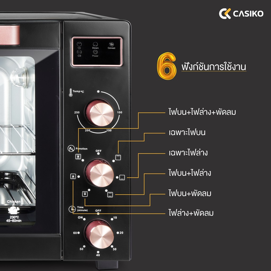 CASIKO เตาอบไฟฟ้า ความจุ 60 ลิตร ขดลวด 6 เส้น รุ่น CK 60L