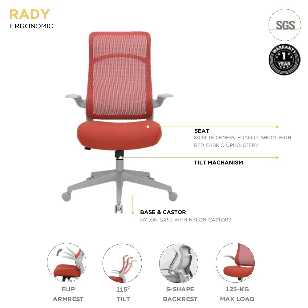 เก้าอี้ทำงานเพื่อสุขภาพพนักพิงสูง รุ่นเรดี้ – สีแดง: 110041758