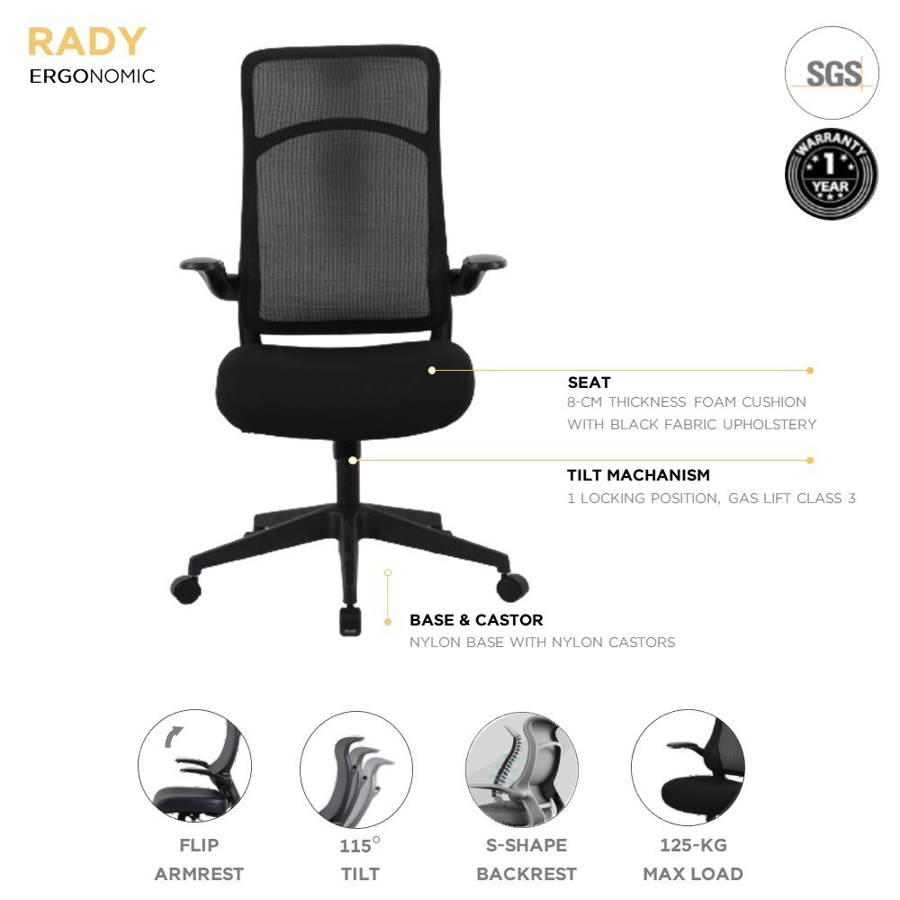 เก้าอี้ทำงานเพื่อสุขภาพพนักพิงสูง รุ่นเรดี้ – สีดำ: 11