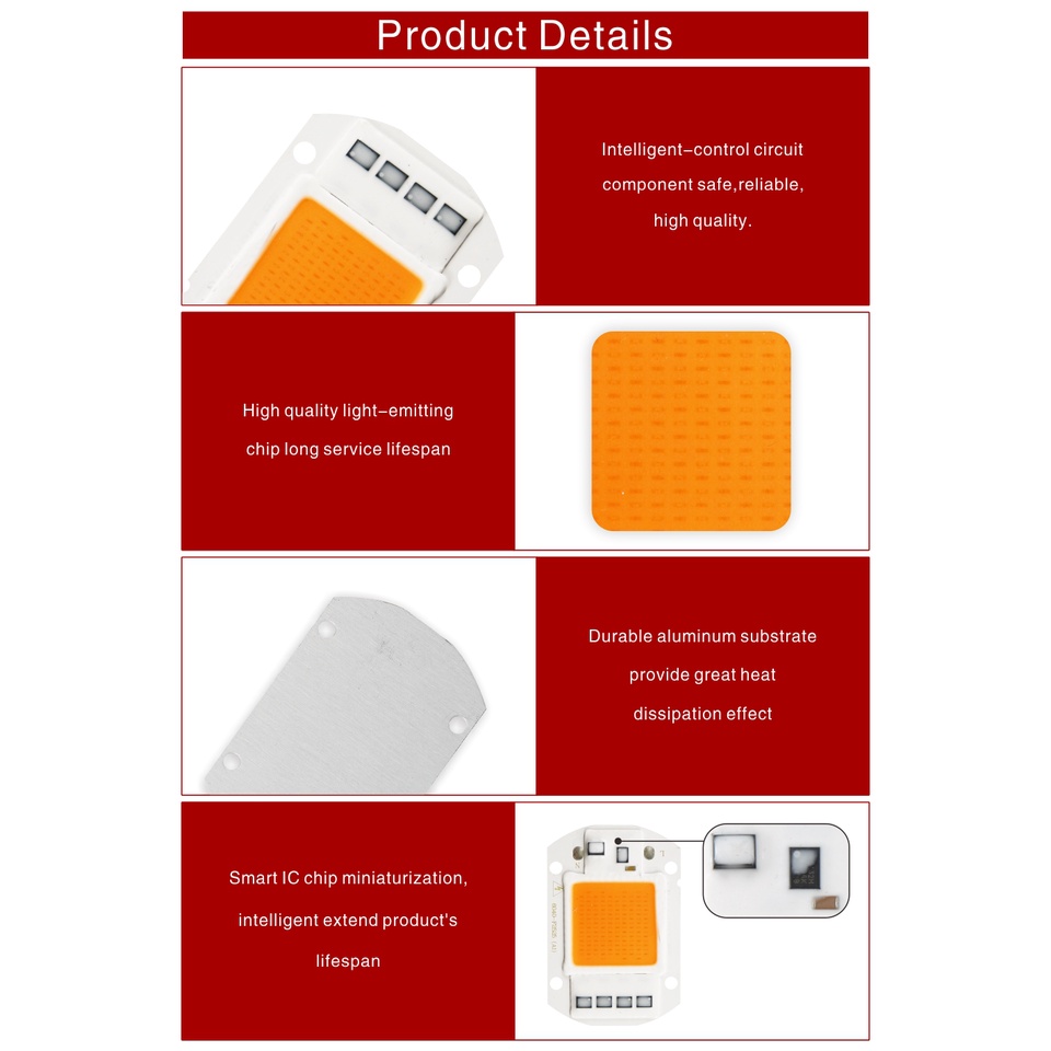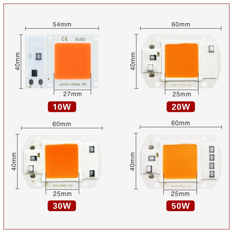 Got Liang ชิปไฟ Led ฟูลสเปกตรัม 10W 20W 30W 50W 110V 220V 380nm-840nm สําหรับปลูกพืชในร่ม