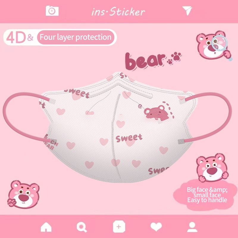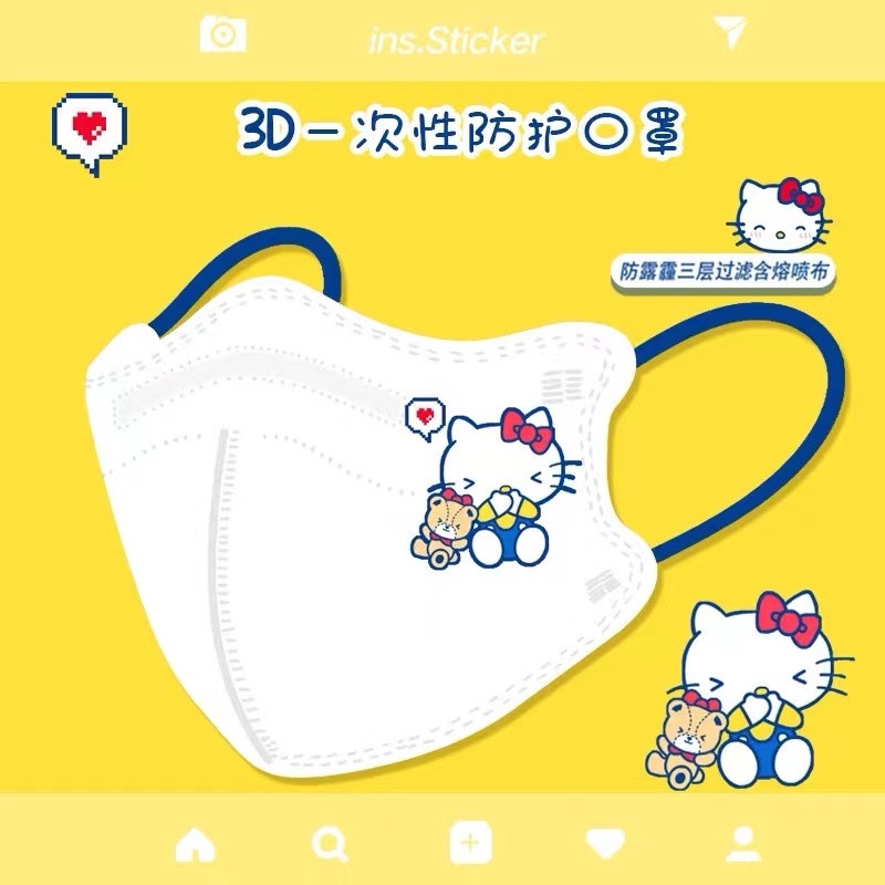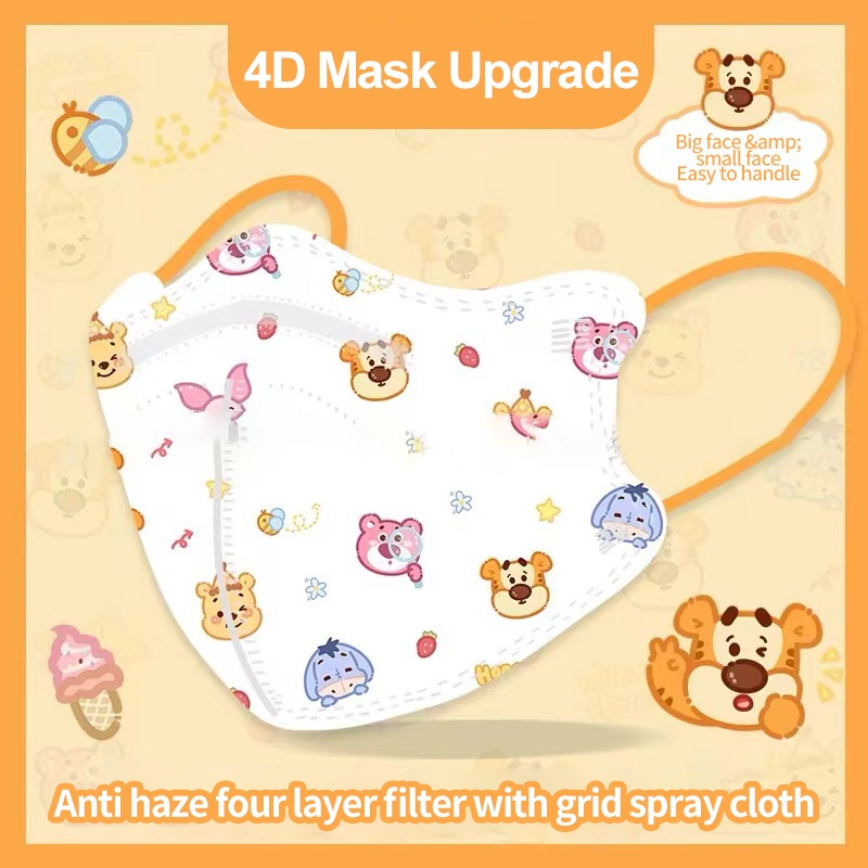 หน้ากากผู้ใหญ่ 10ชิ้นหน้ากาก เฮลโลคิตตี้ หน้ากาก4d ผู้ใหญ่รูปแบบการ์ตูนน่ารักหิมะสีขาววินนี่เดอะพูห์หน้ากากป้องกันสูง4ชั้นนุ่มปลอดภัยหน้ากาก【 Goob 】