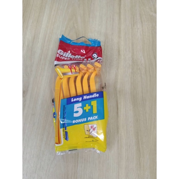 Gillette Super Thin II ยิลเลตต์ ด้าม มีด โกน หนวด ด้ามเหลือง *** 5+1 ด้าม/ห่อ ***