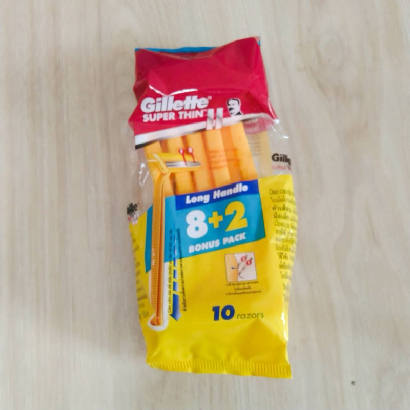 Gillette Super Thin II ยิลเลตต์ ด้าม มีด โกน หนวด ด้ามเหลือง *** 5+1 ด้าม/ห่อ *** 8+2 ราคา ต่อห่อ