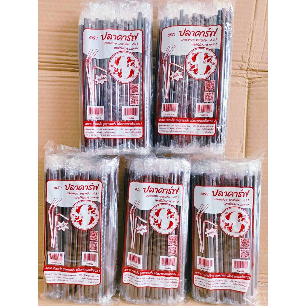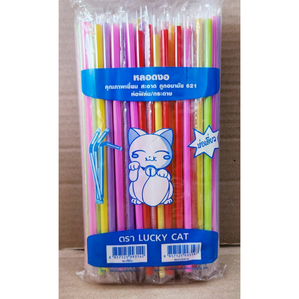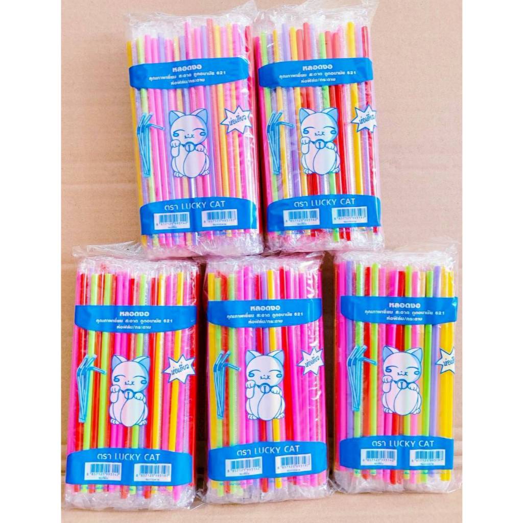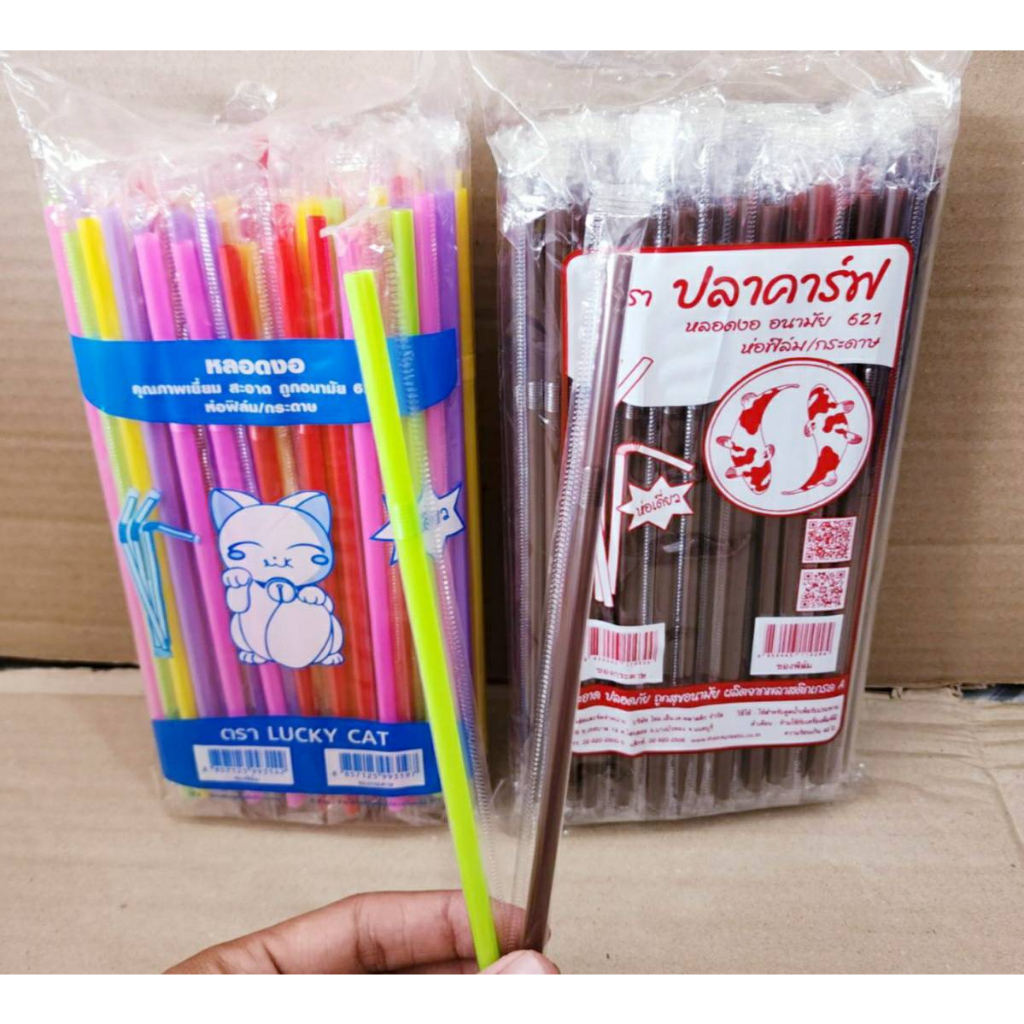 (ชุดละ 5 แพค) หลอดงอ หลอดดูดน้ำพลาสติก แยกซีน 6 mm. ยี่ห้อLUCKY CAT และ ปลาคาฟ แพคละ 100 เส้น