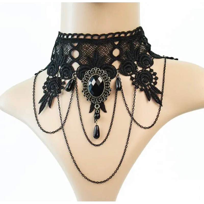 สร้อยคอลูกไม้สไตล์โลลิต้า โช้กเกอร์ลูกไม้อลังการ โกธิค ย้อนยุค choker Lolita gothic