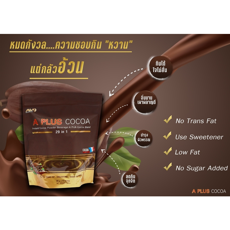 A plus cocoa เครื่องดื่มโกโก้ปรุงสำเร็จชนิดผง โกโก้เพื่อสุขภาพ 1 ห่อ บรรจุ 17 ซอง