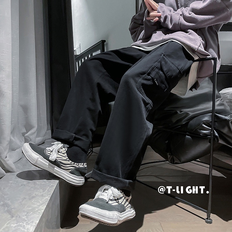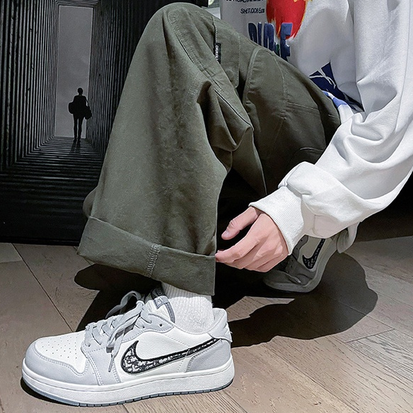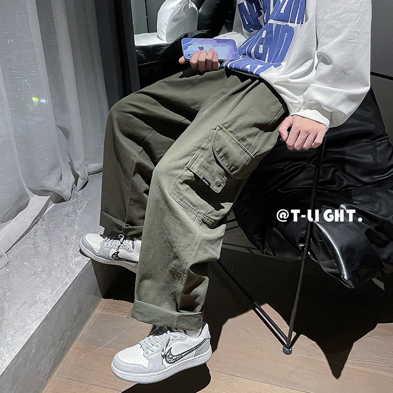 กางเกงสเก็ตบอร์ด ทรงหลวม แนวตรง สีเขียว แฟชั่นฤดูใบไม้ร่วง สไตล์ญี่ปุ่นเรโทร สําหรับผู้ชาย