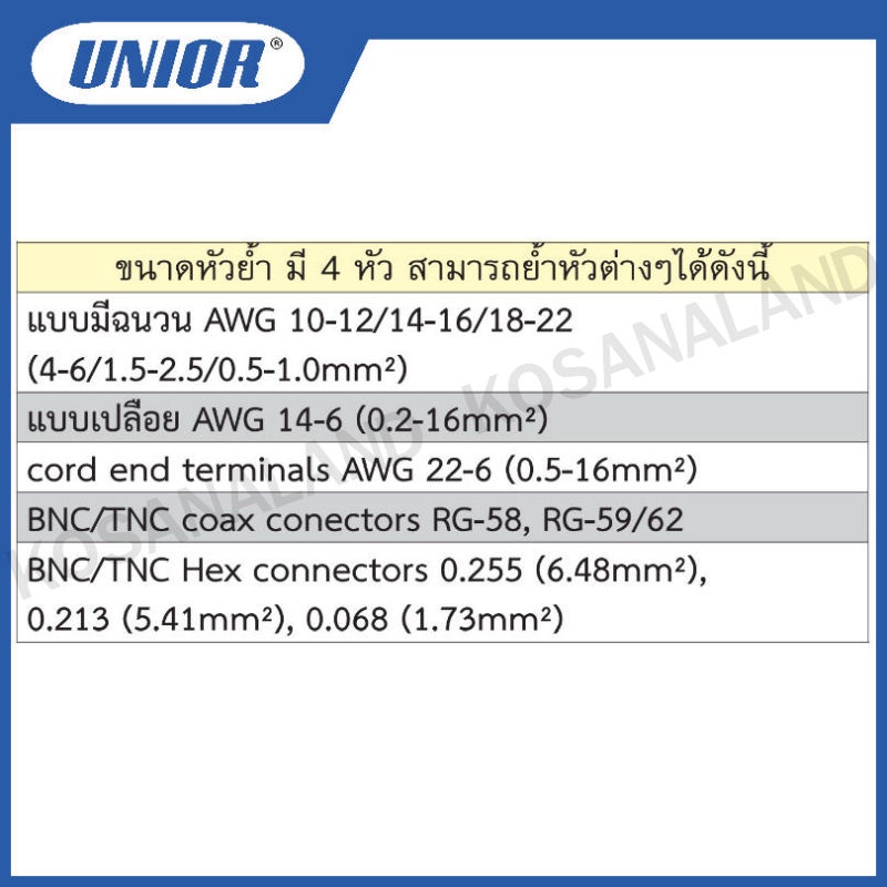 Unior คีมย้ำ หางปลาแบบ เปลี่ยนหัวได้ (Crimp grip Pliers) สามารถเปลี่ยนหัวย้ำ ได้ง่ายและเร็ว รุ่น 428/4AGPB