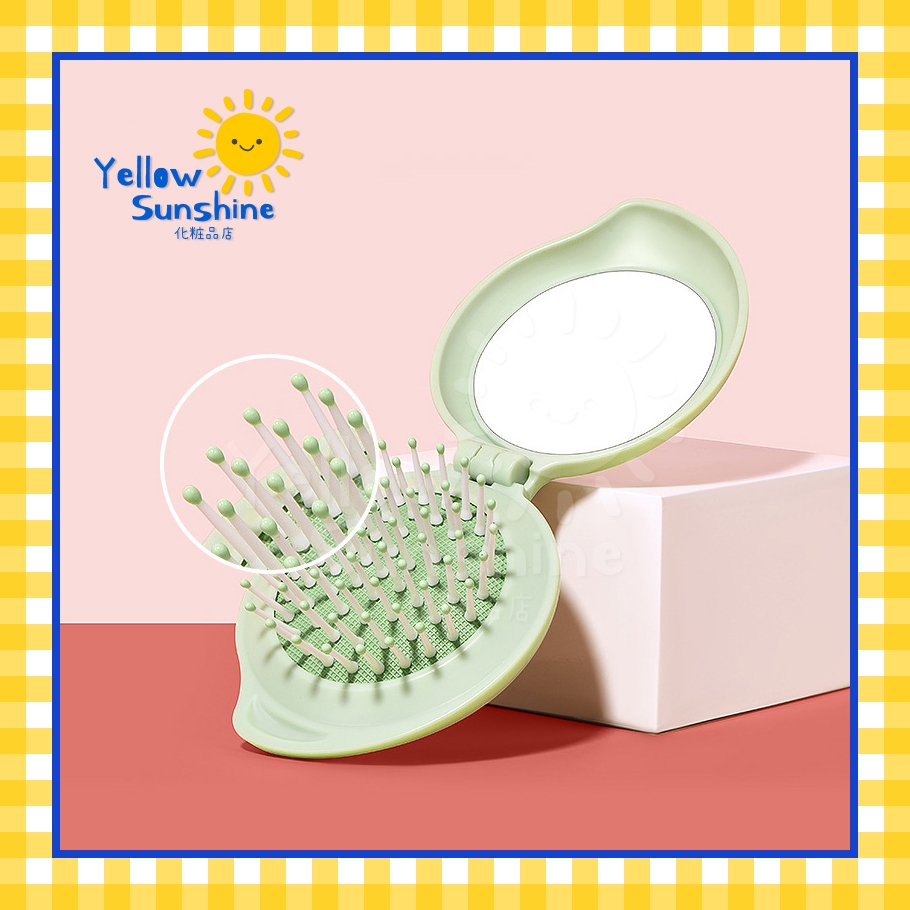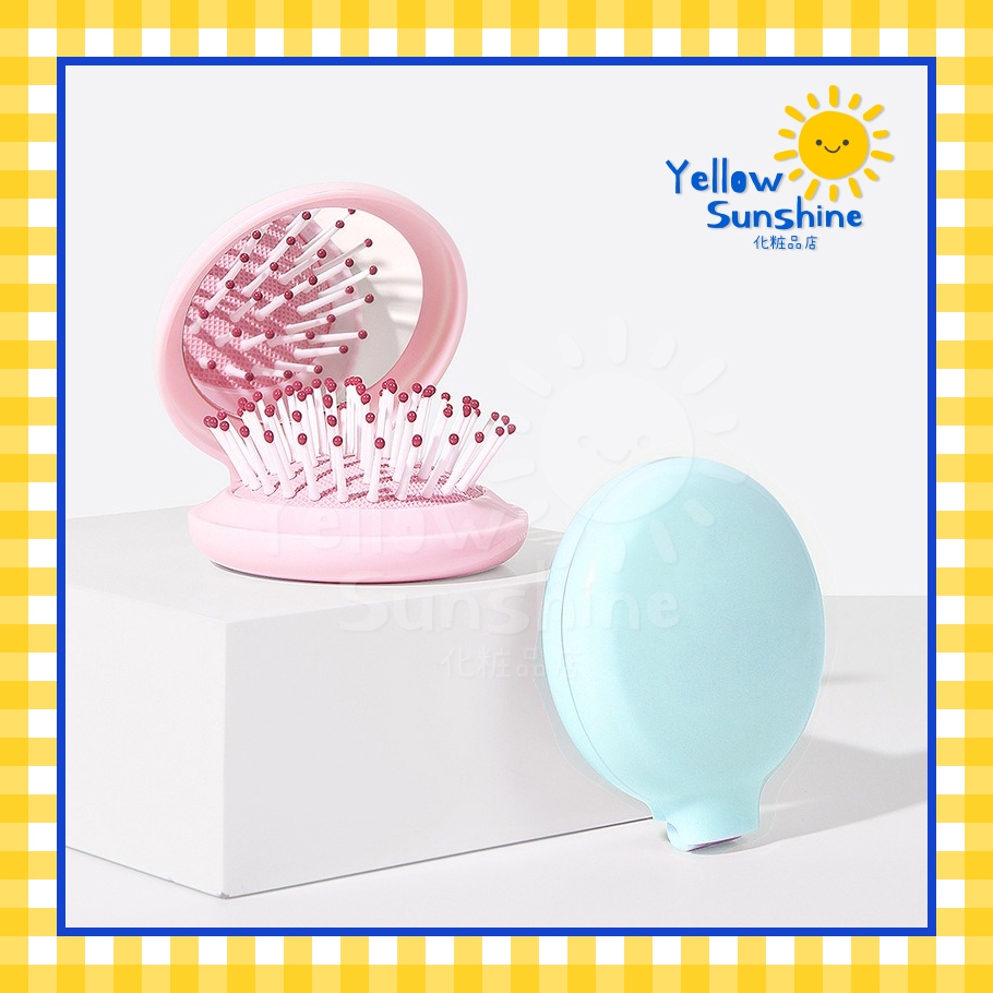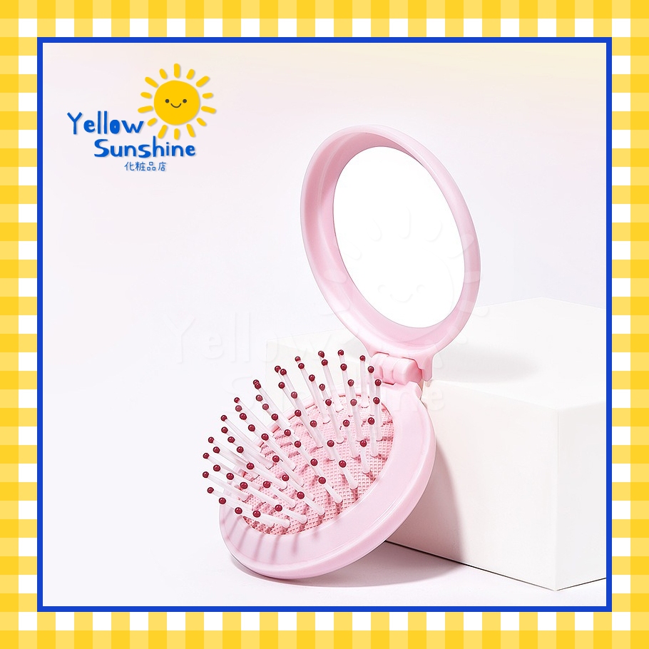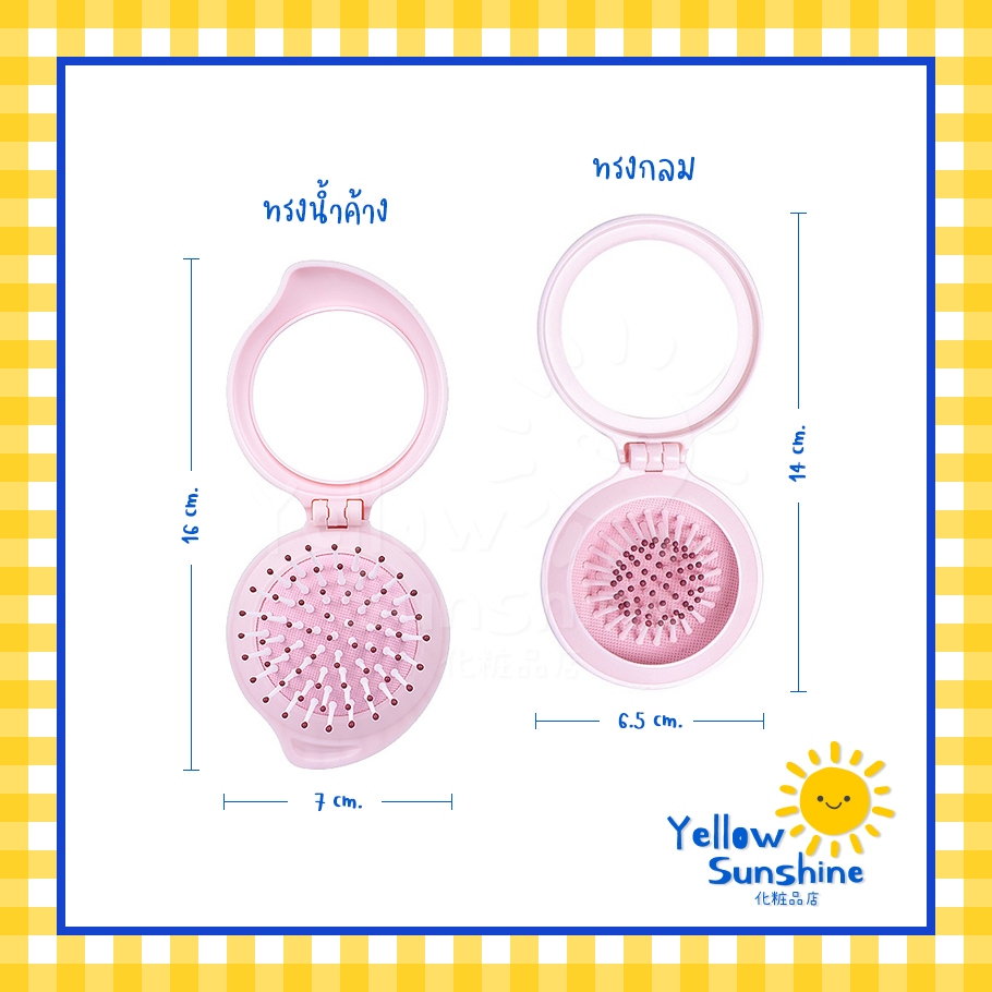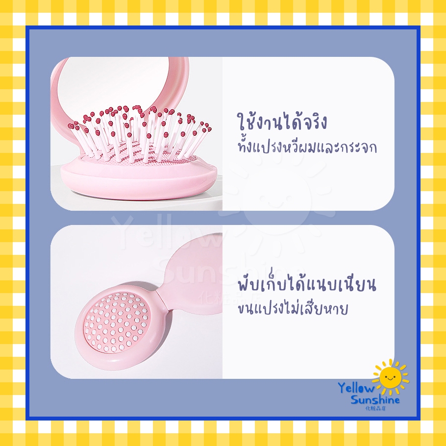 แปรงหวีผมพร้อมกระจกแบบพกพา พับเก็บได้ รุ่นตลับแป้ง ชิ้นเดียวจบ แปรงพกพา หวีพกพา กะทัดรัด Mini Round Brush With Mirror
