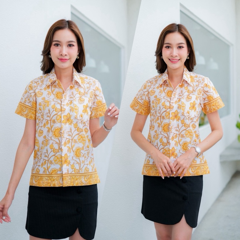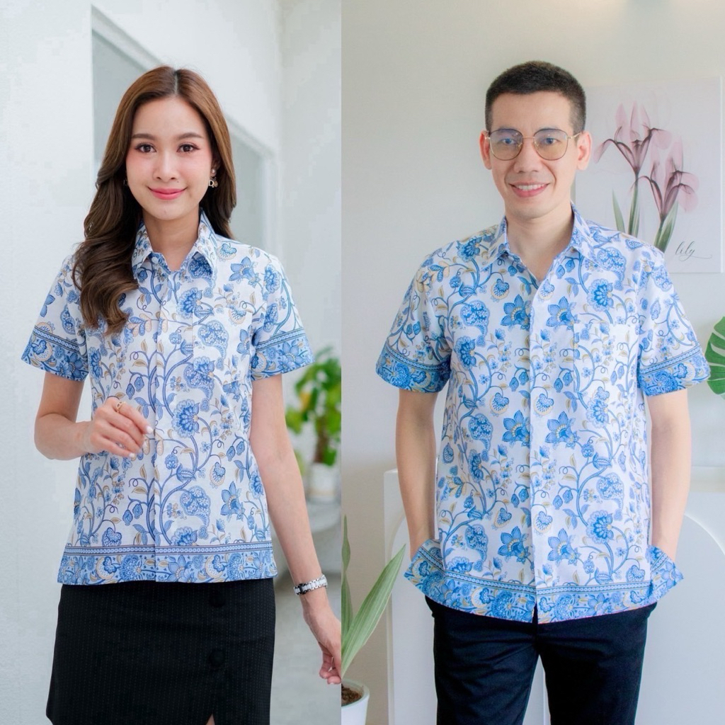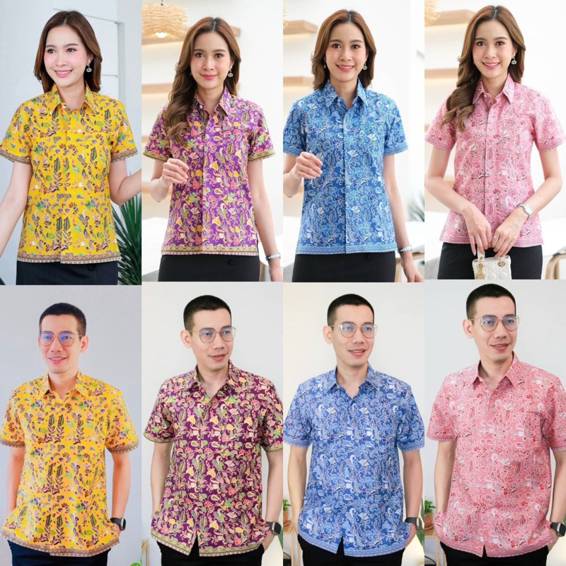 เสื้อเชิ้ตปาเต๊ะ ชาย หญิง แต่งกระเป๋าหน้า สวย งาม