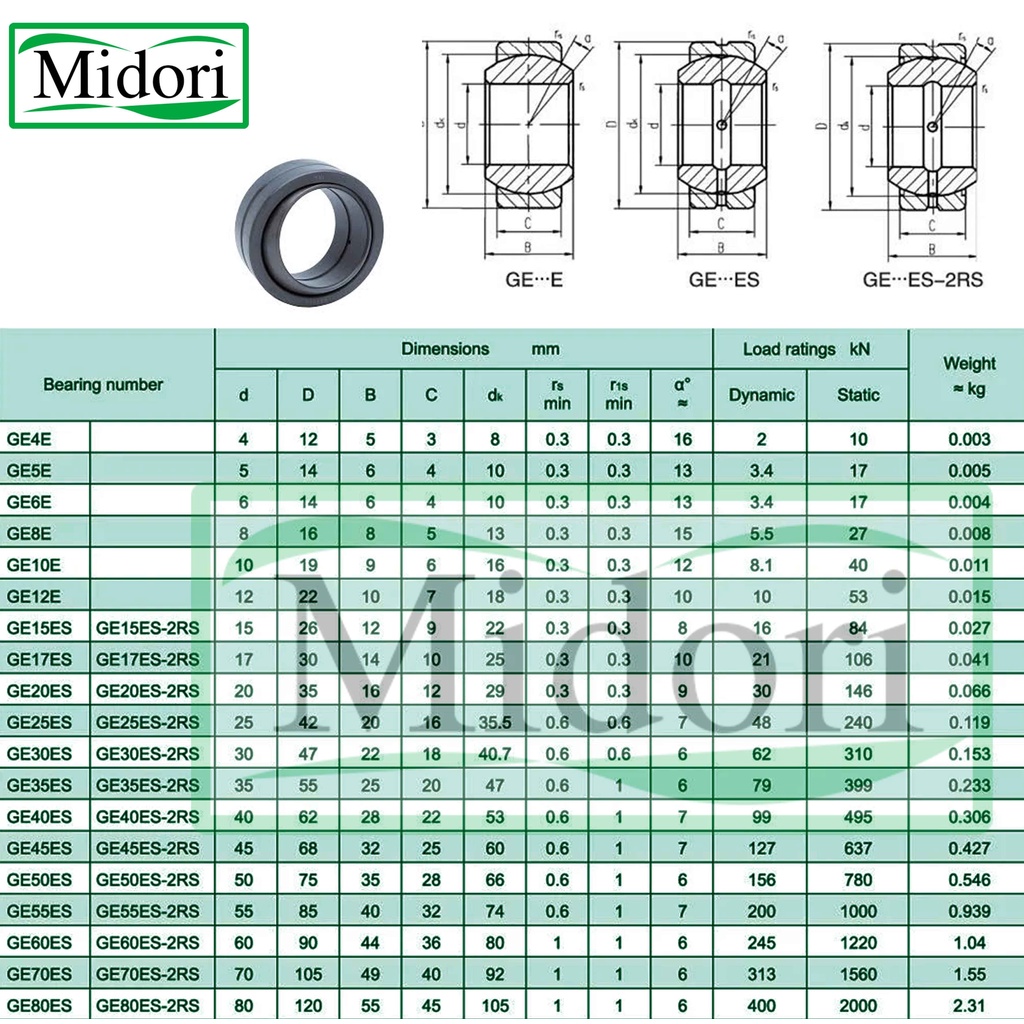 หยิบใส่ตะกร้าGE25ES GE30ES GE35ES ตลับลูกปืนตาเหลือก ( SPHERICAL PLAIN BEARINGS ) RS มีซีลยาง