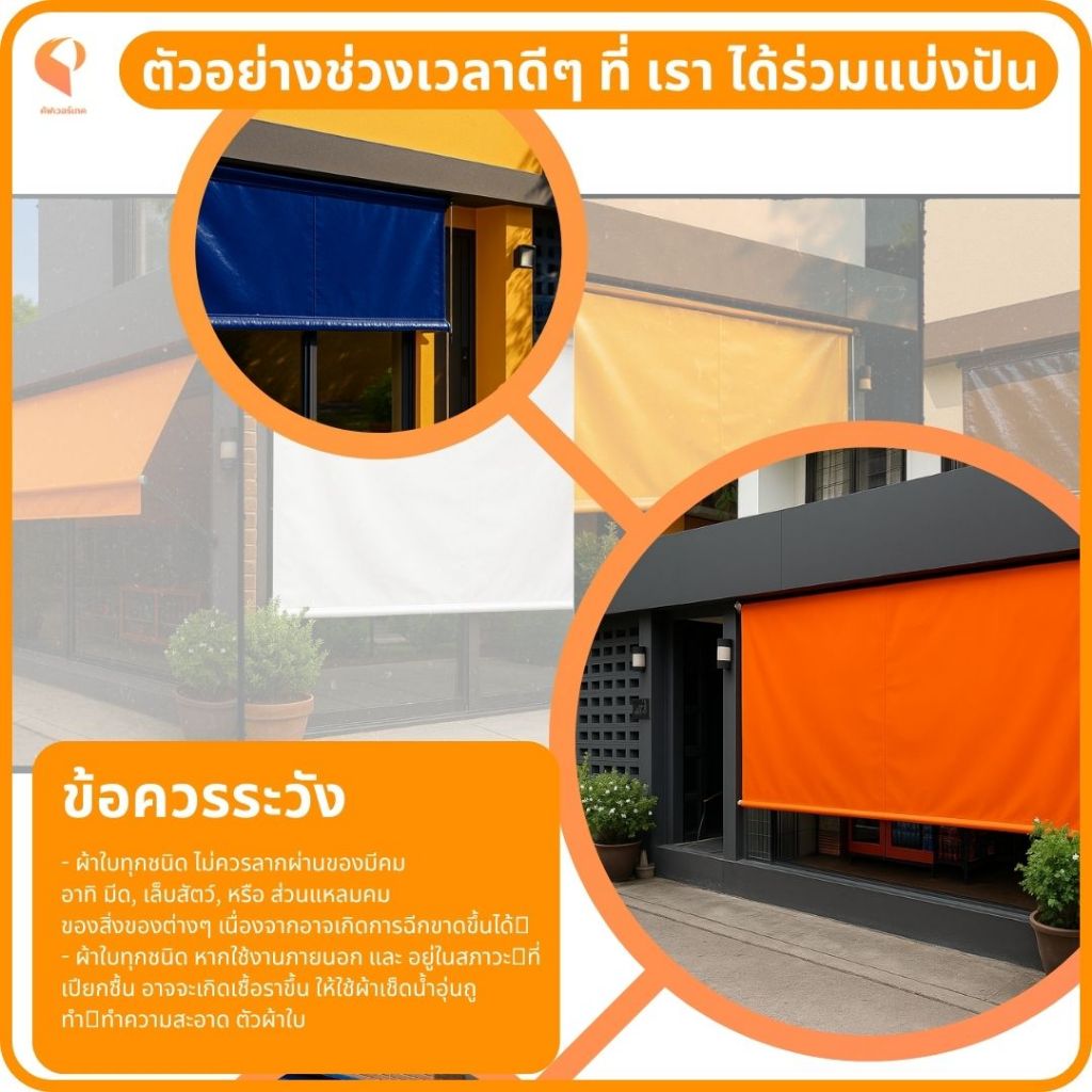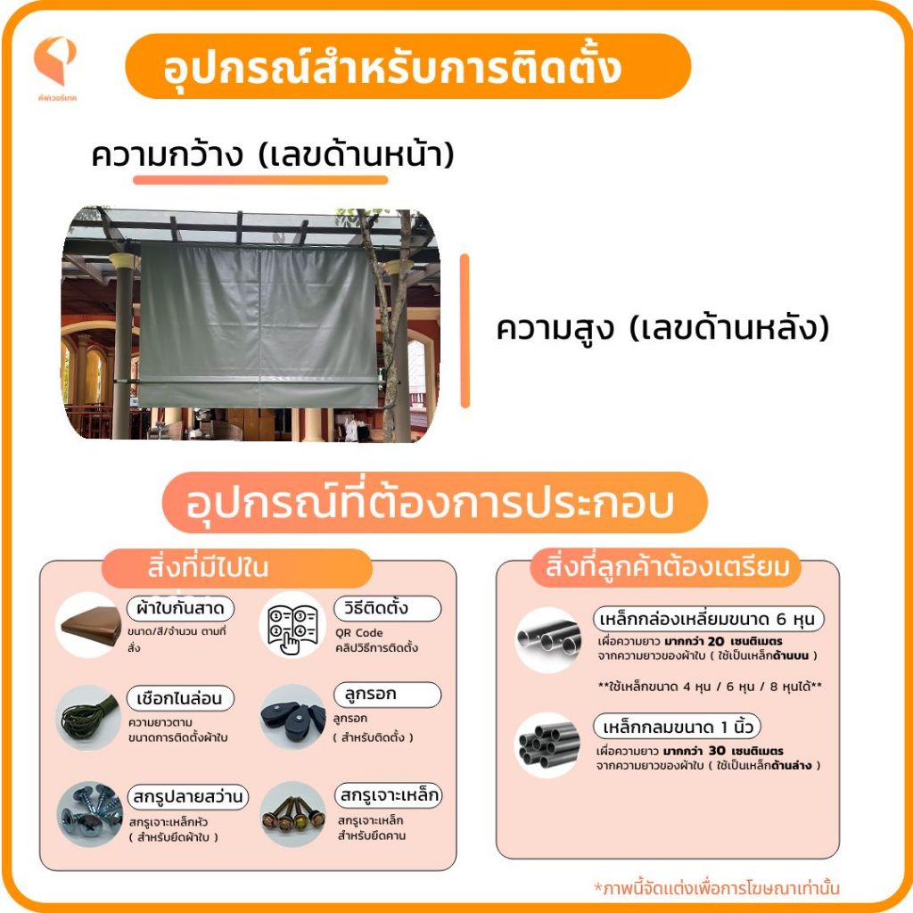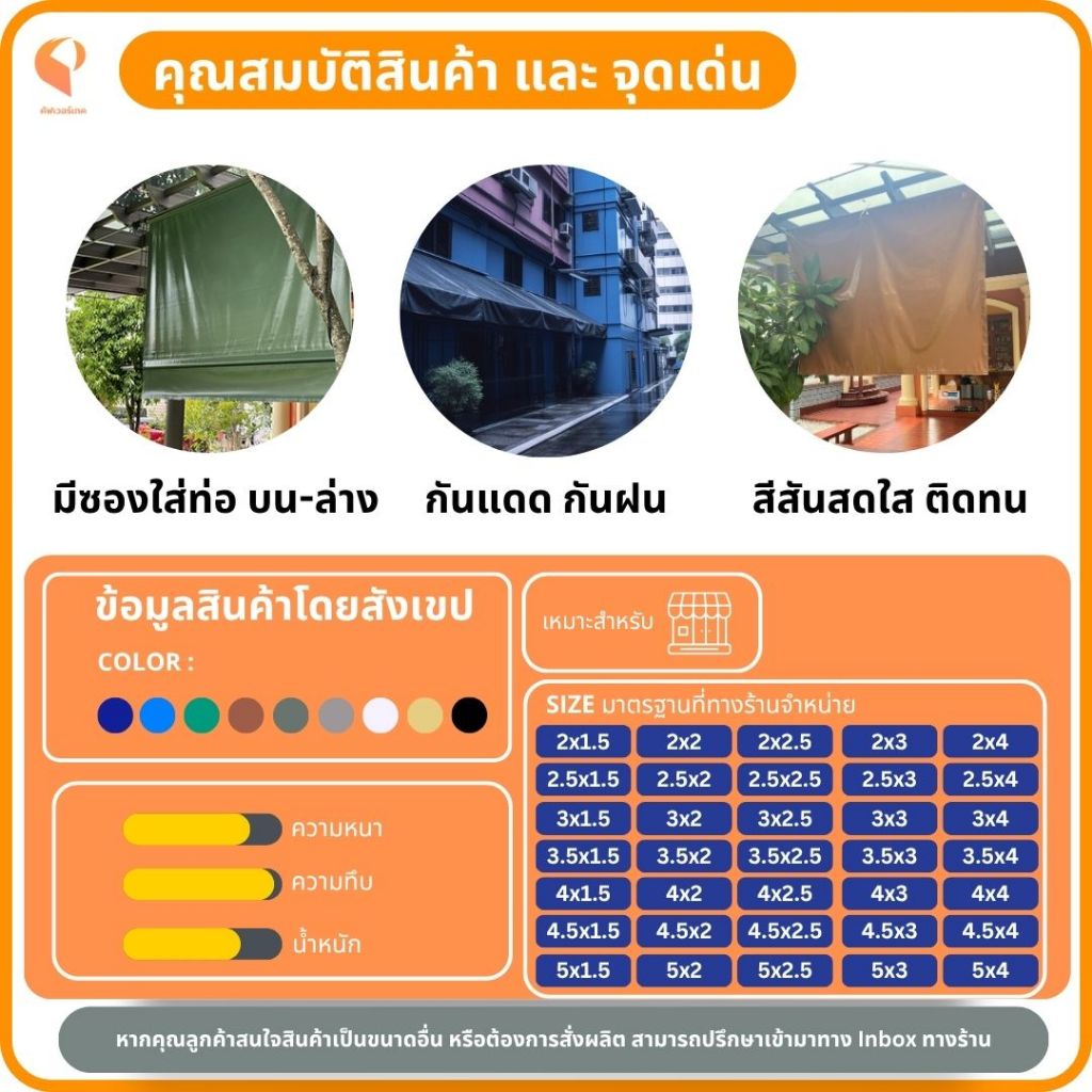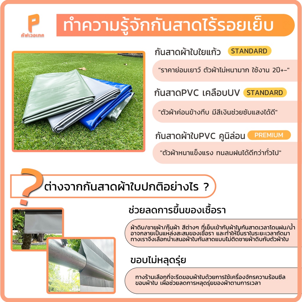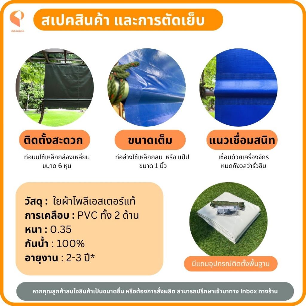 🟠 ผ้าใบกันสาดชักรอกแบบกึ่งสำเร็จรูป PVCใยแก้ว ⛺ รุ่น Eco