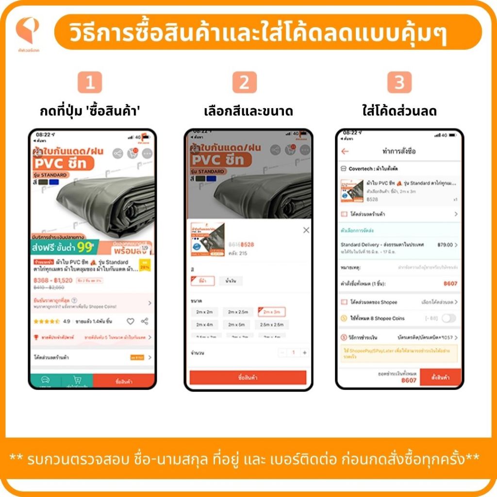 ✅ ผ้าใบผืนตามคุณลักษณะที่สั่ง x