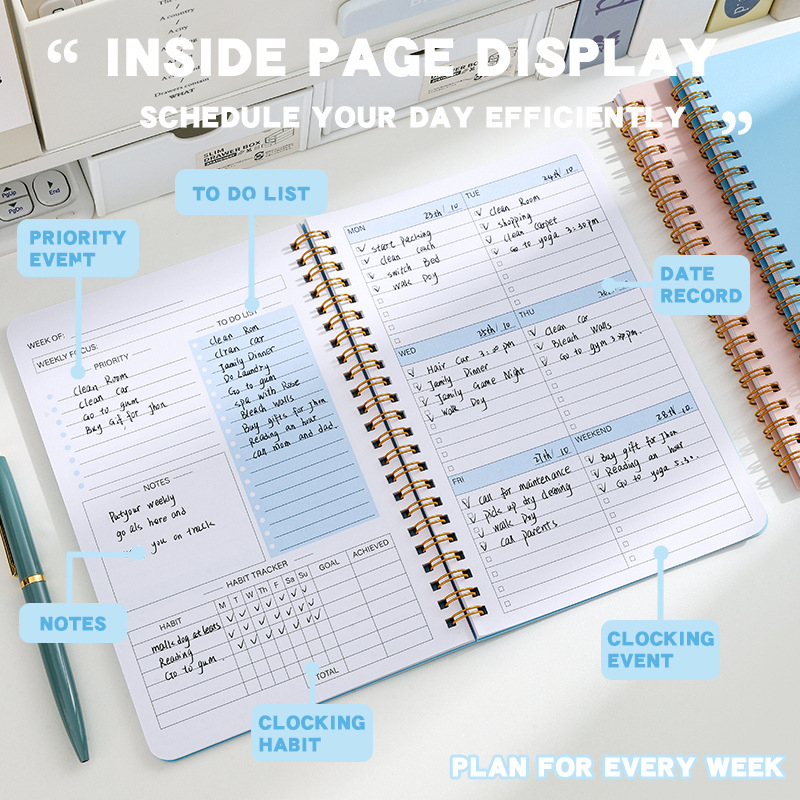 สมุดโน้ตแพลนเนอร์ แบบเกลียว ขนาด A5 เครื่องเขียน สําหรับสํานักงาน โรงเรียน 52 แผ่น