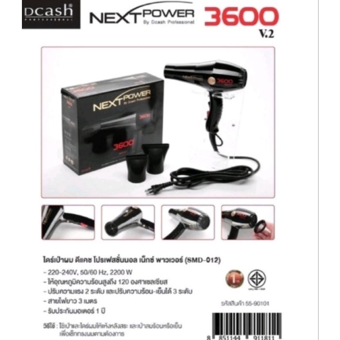 ไดร์เป่าผม ดีแคช โปรเฟสชั่นนอล เน็กซ์ พาวเวอร์ 3600