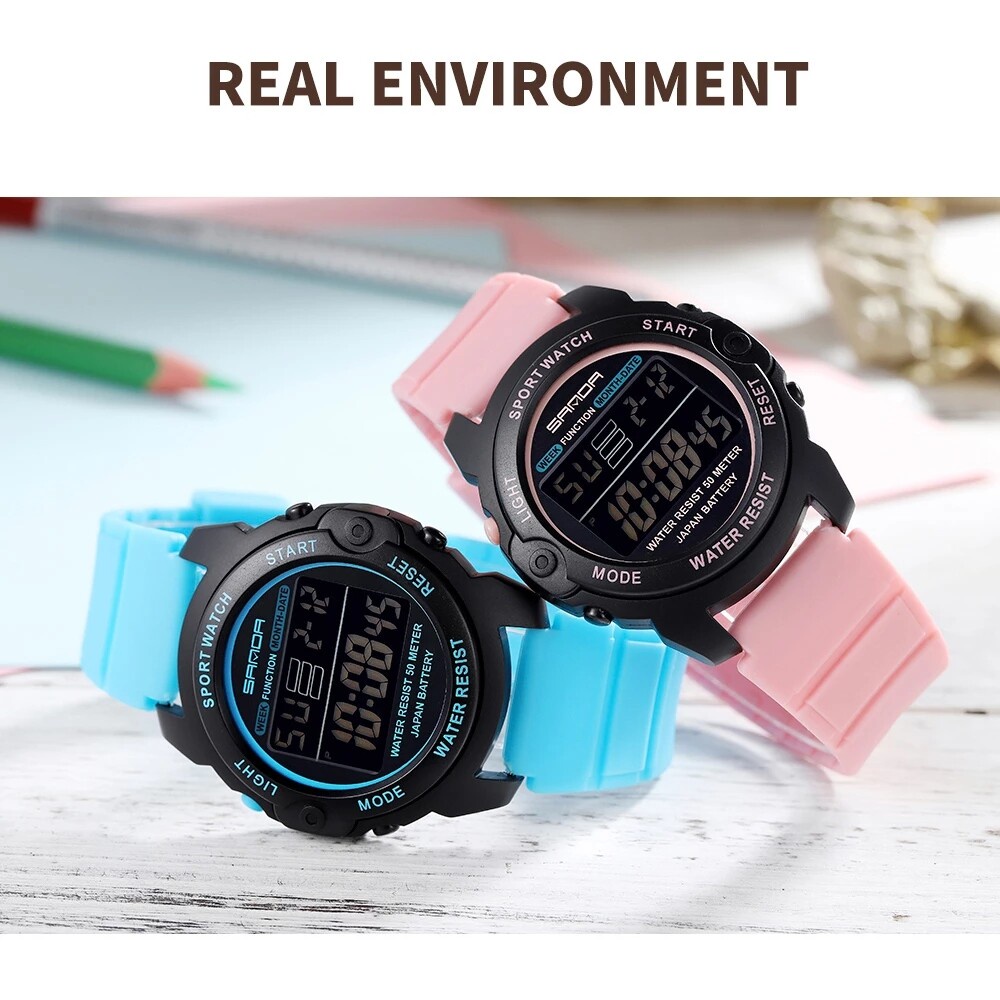 Sanda 6003 ใหม่ นาฬิกาข้อมือดิจิทัล LED กันน้ํา แฟชั่นสปอร์ต สําหรับสตรี